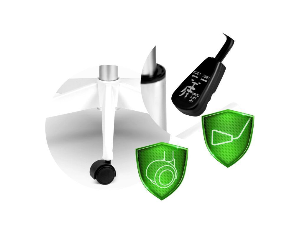 - bază din plastic cu roți din cauciuc, care nu zgârie podeaua