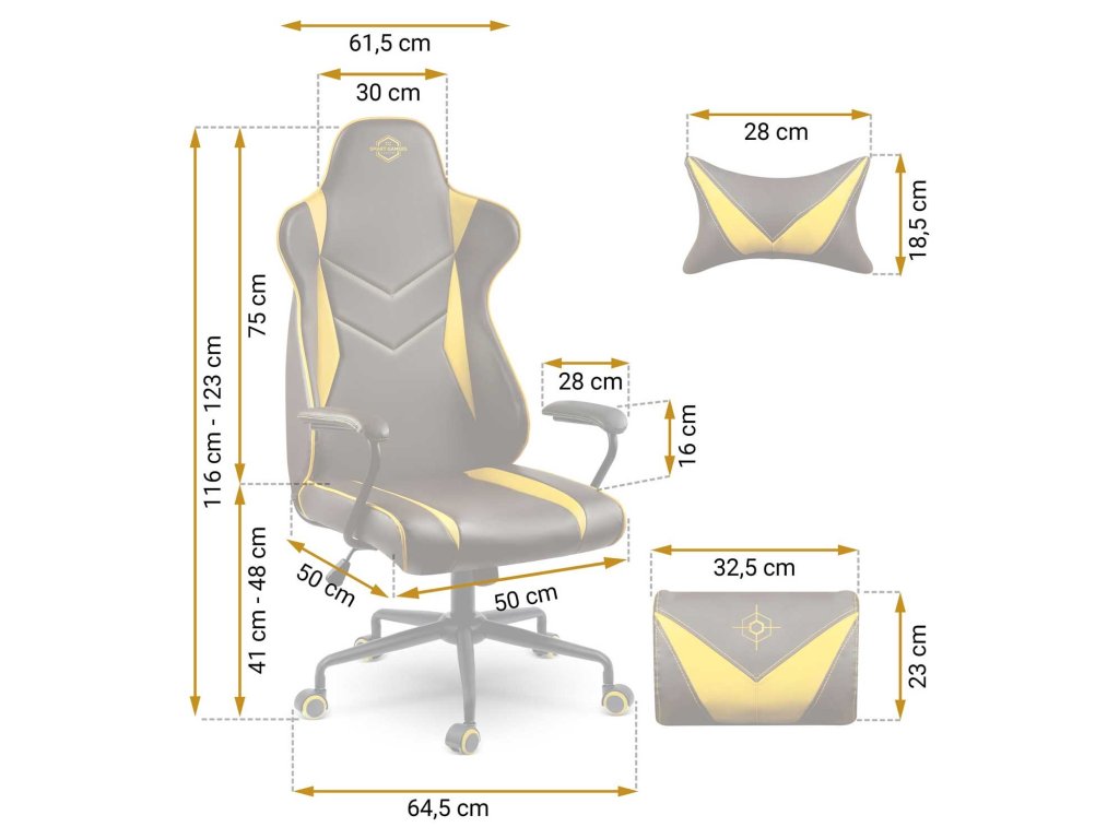 Perna lombară conturată și perna pentru cap ajută la menținerea unei posturi ergonomice și sigure. Pernele se adaptează la forma corpului tău și asigură confortul la ședere.