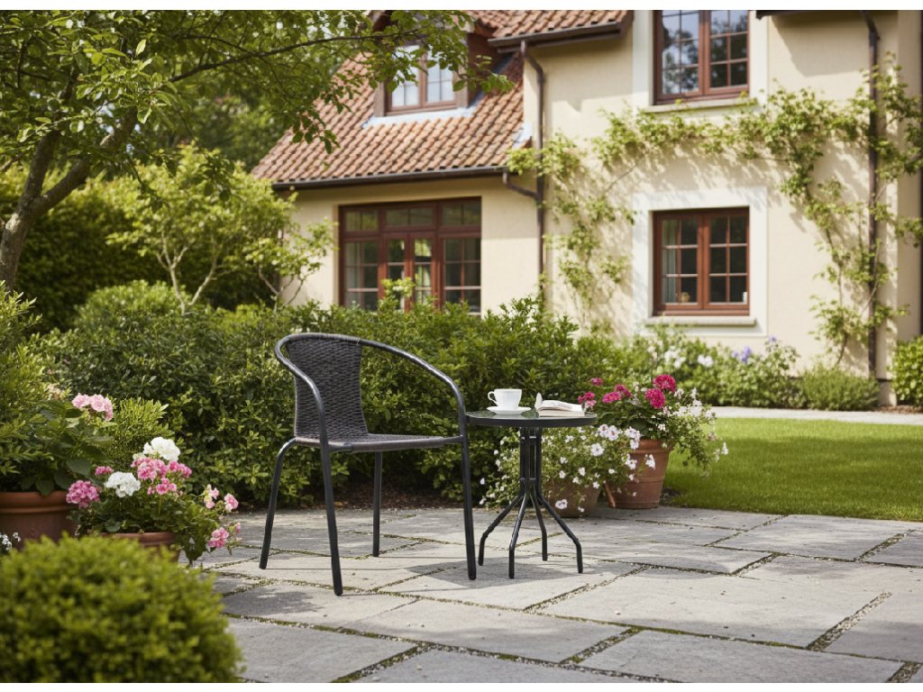 Scaunul de grădină este o soluție excelentă în amenajarea spațiilor mici în aer liber. Datorită construcției sale rezistente și aspectului elegant, se potrivește perfect în grădină, pe terasă sau balcon. Scaunul poate fi combinat cu o măsuță, creând astfel un spațiu confortabil pentru relaxare.