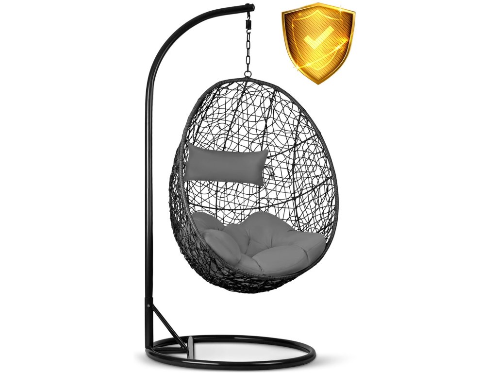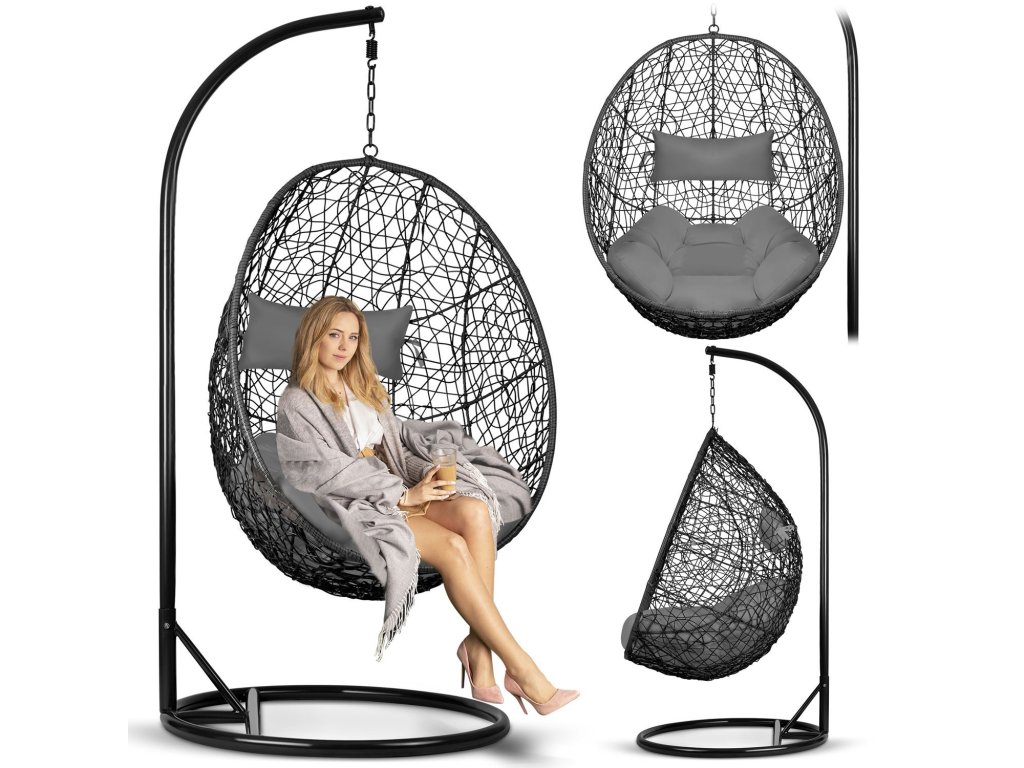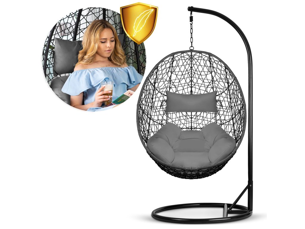 Scaun de grădină suspendat Brava negru + perne gri Sofotel