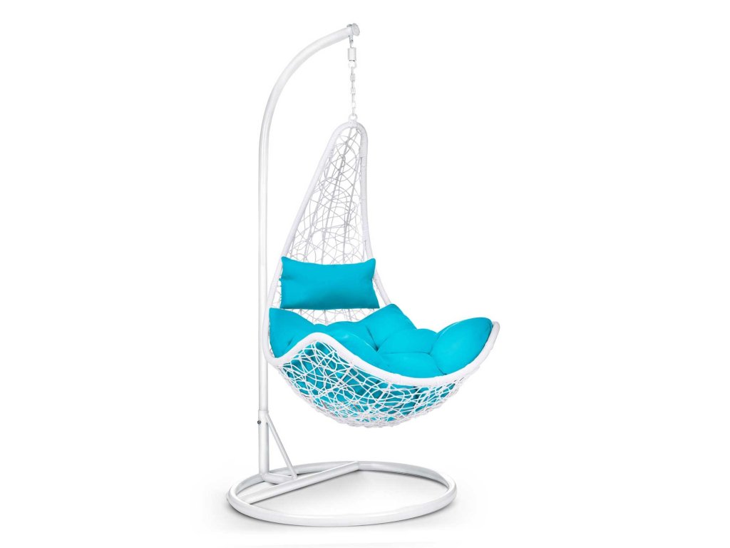 Scaun de grădină suspendat Cabana alb + perne albastre