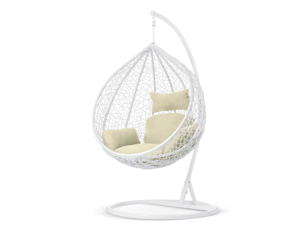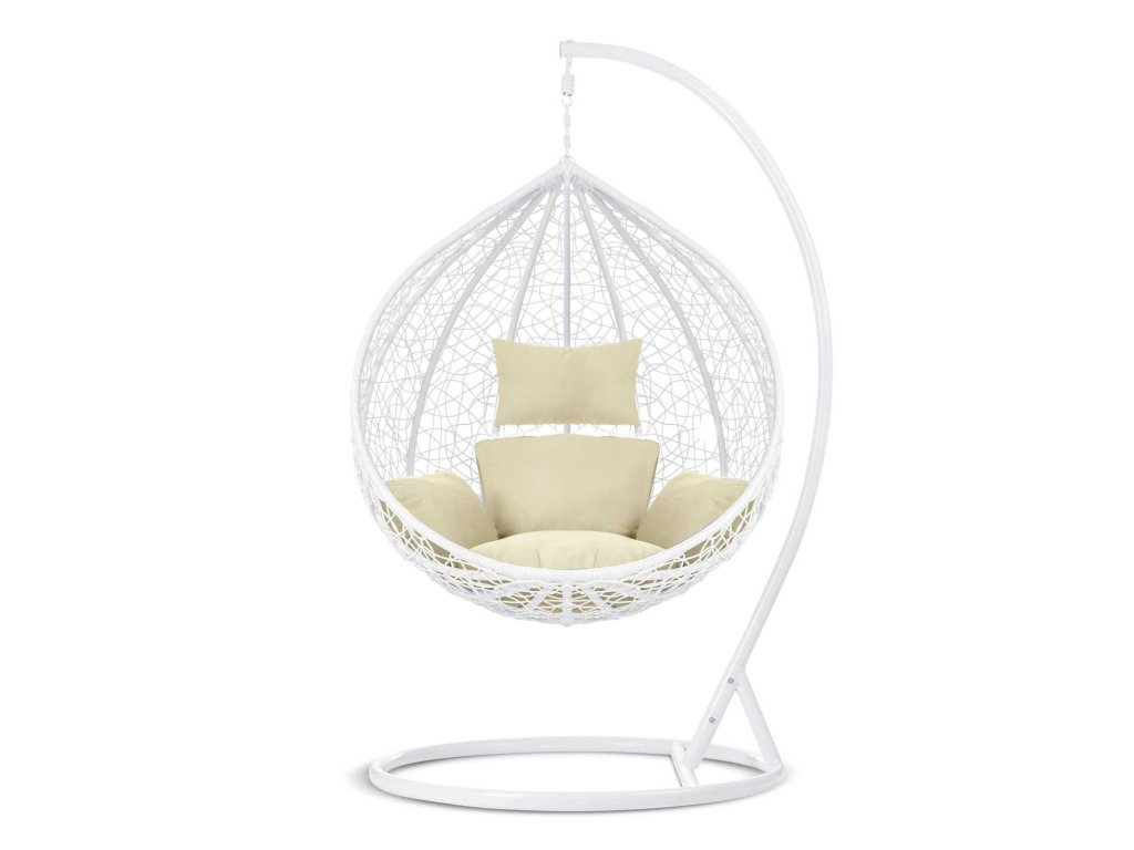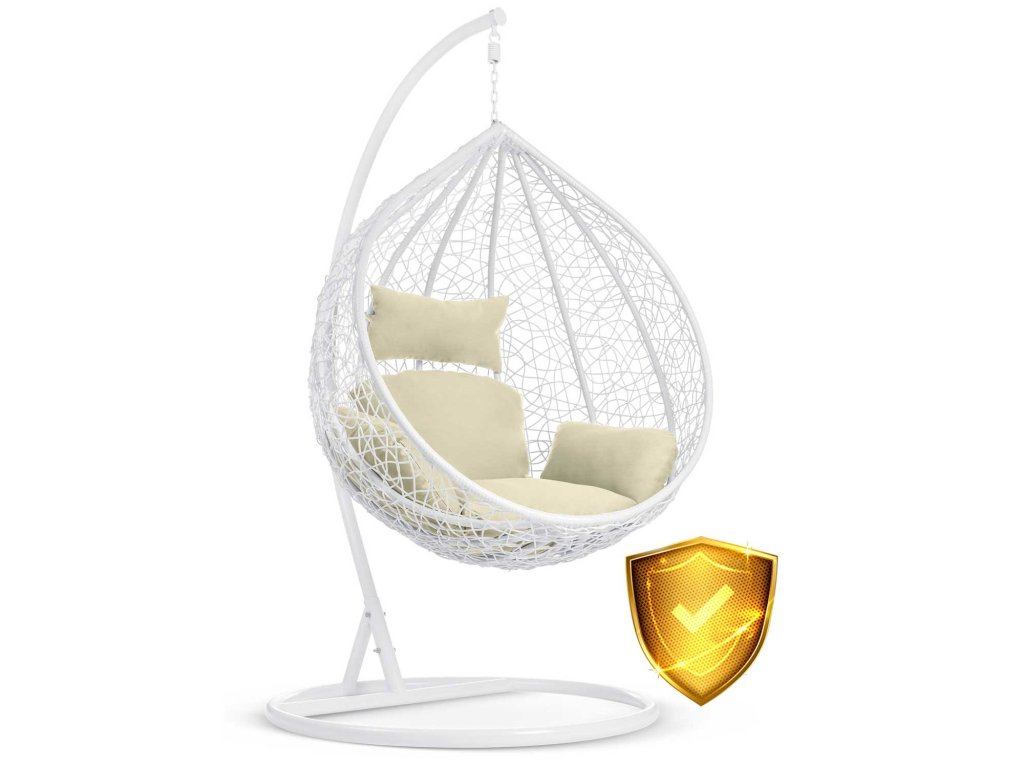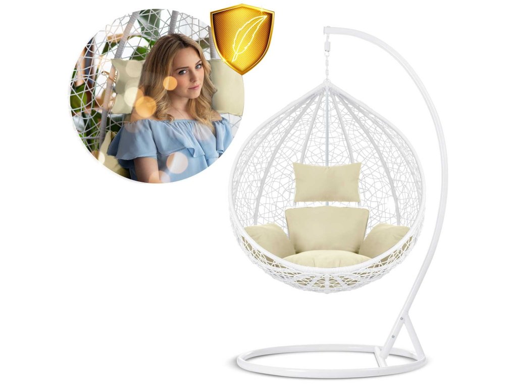 Scaun de grădină suspendat Hawana alb + perne bej Sofotel