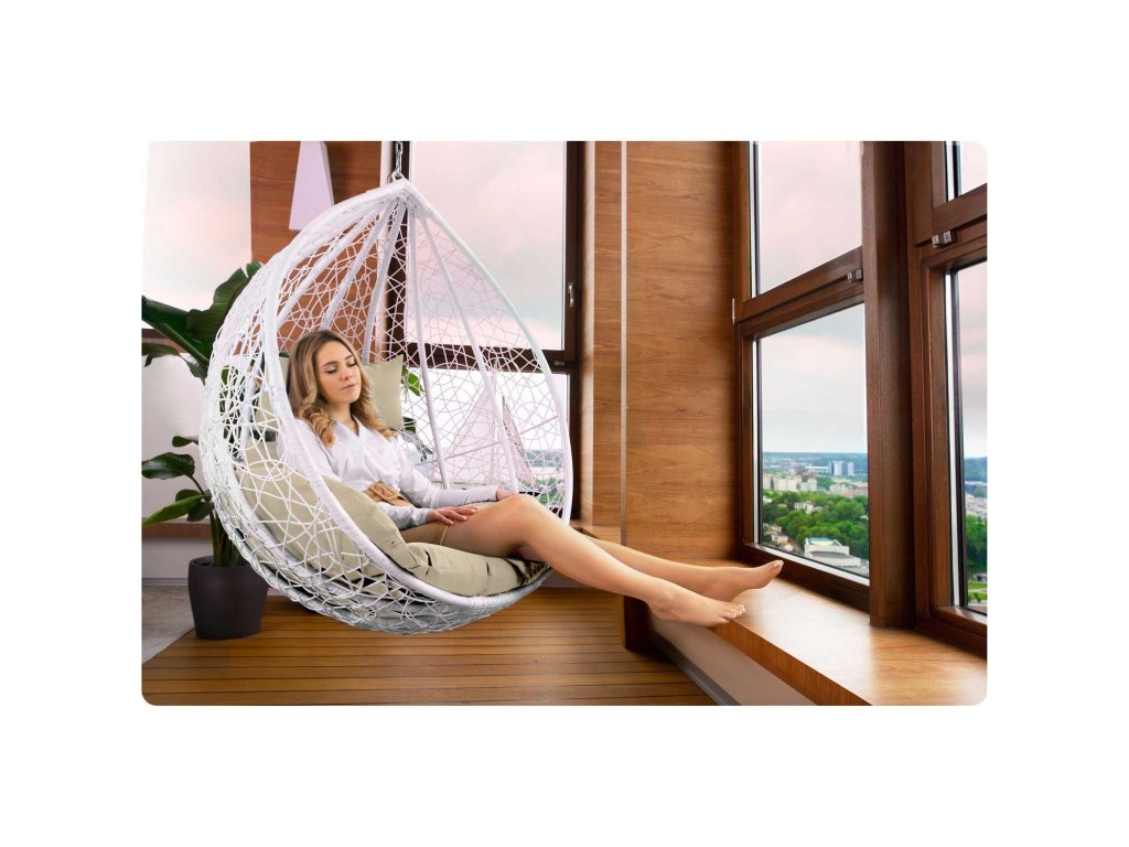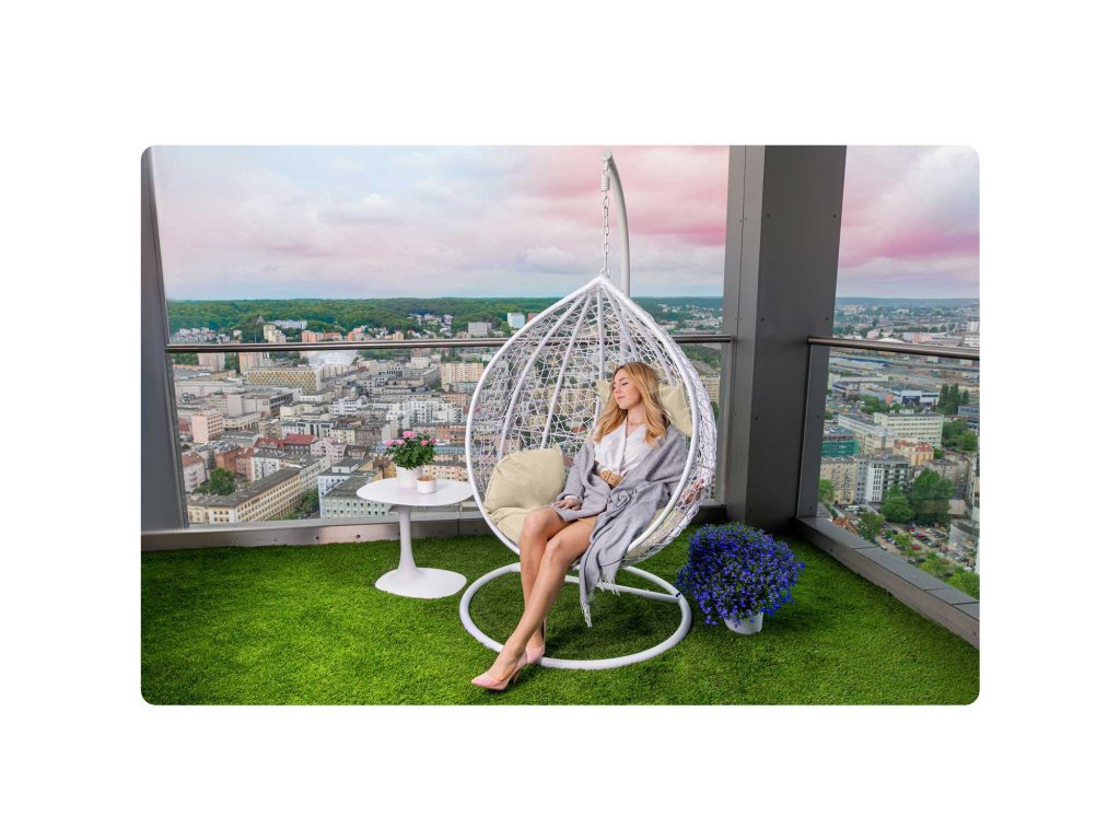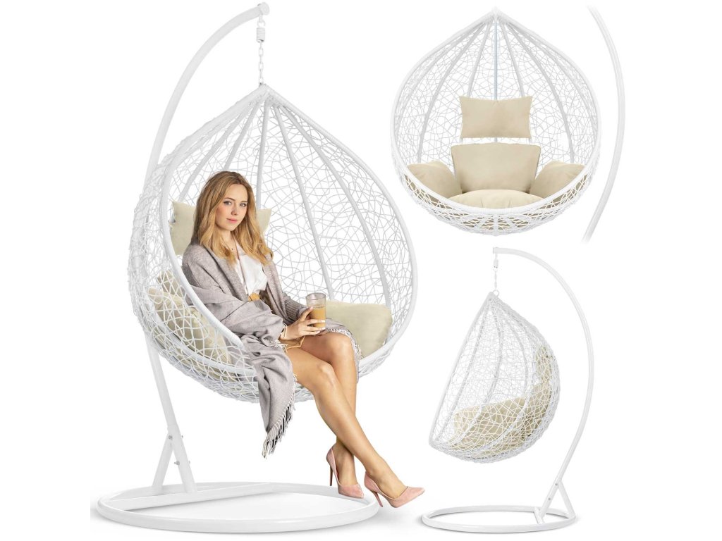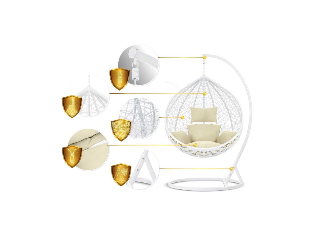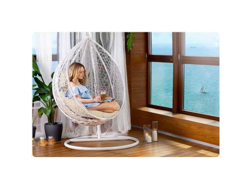 Scaun de grădină suspendat Hawana alb + perne bej Sofotel