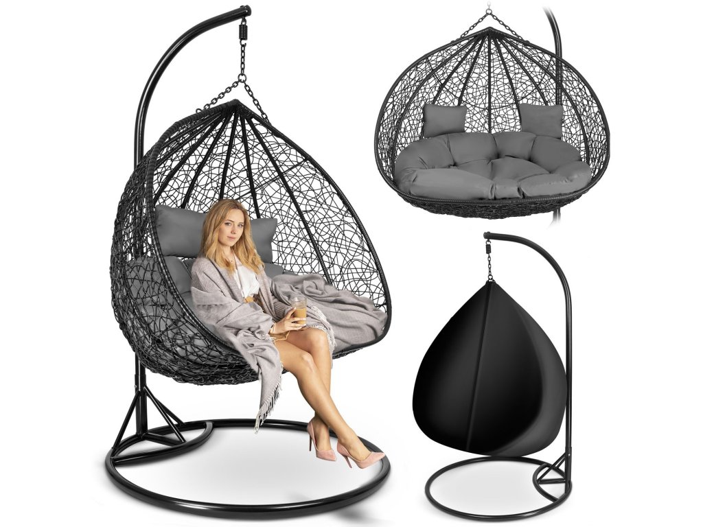 Scaun de grădină suspendat Hawana Duo negru + perne gri Sofotel