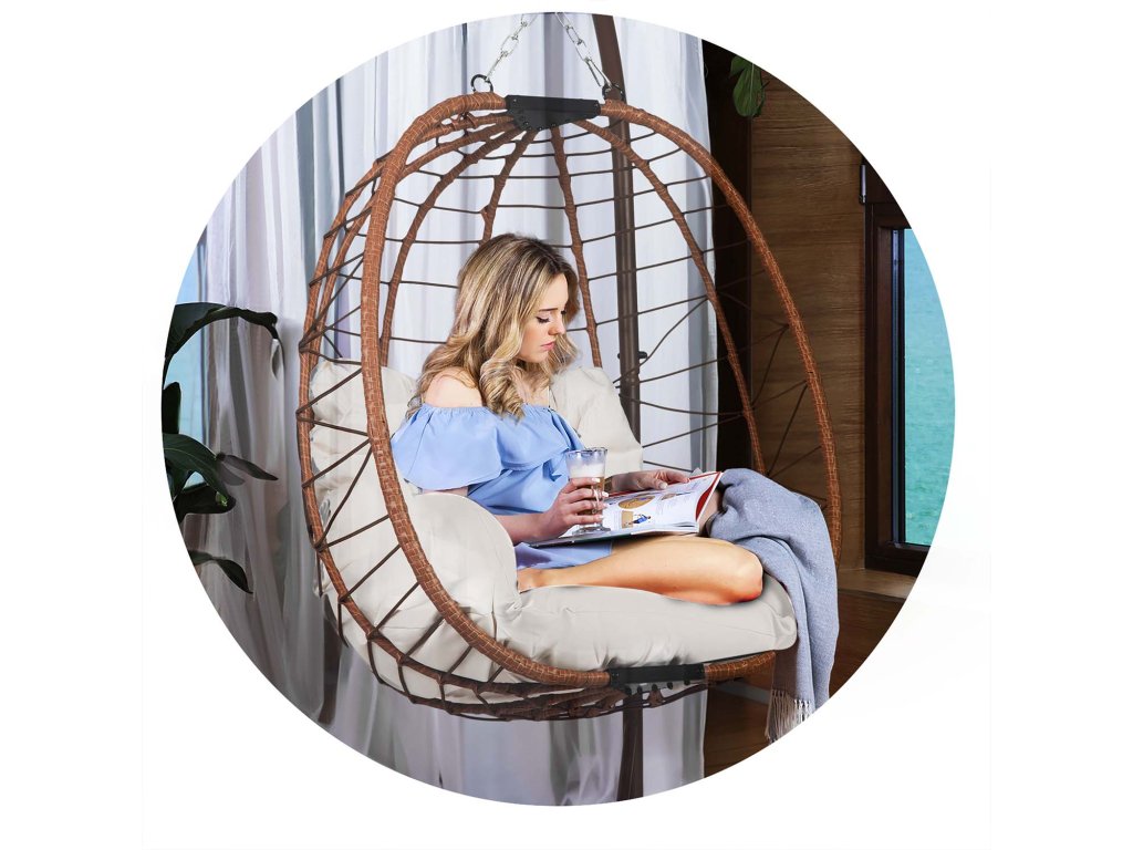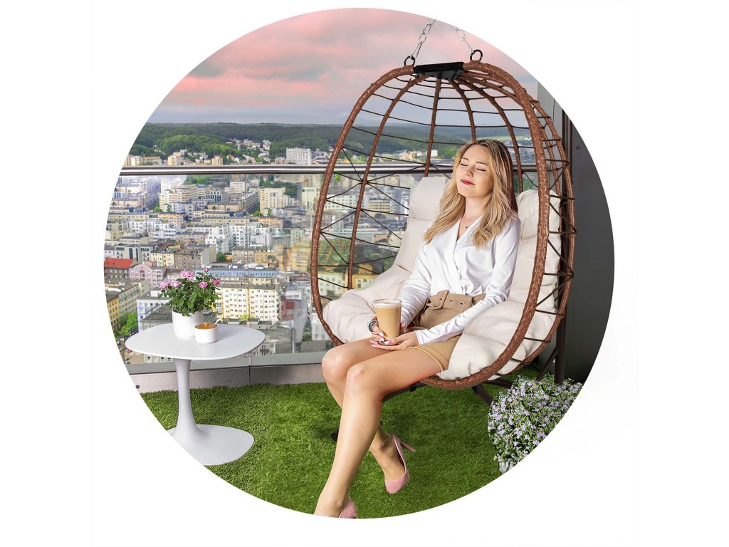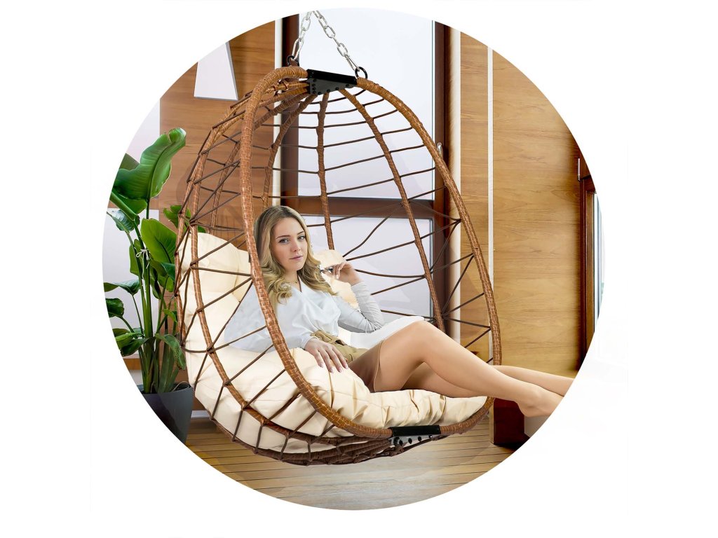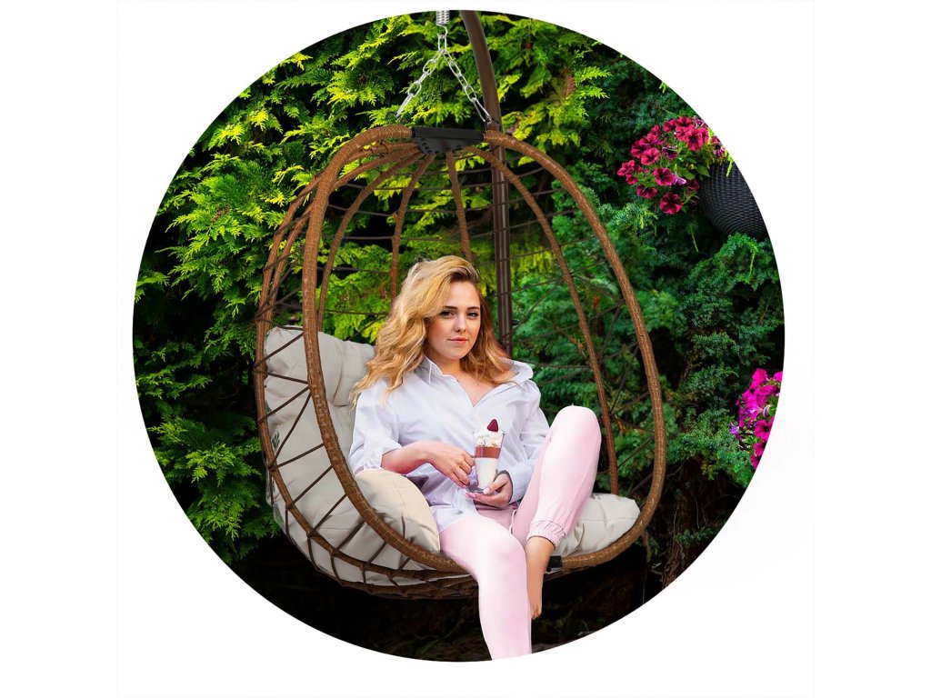 Scaun de grădină suspendat Tihuana maro + perne bej deschis Sofotel