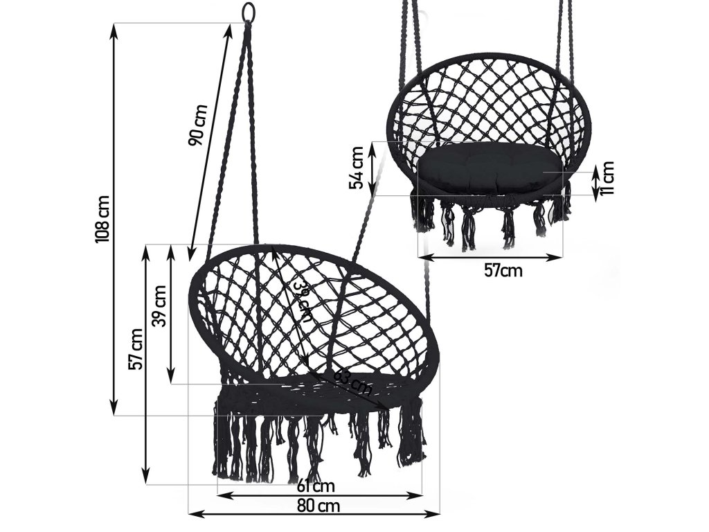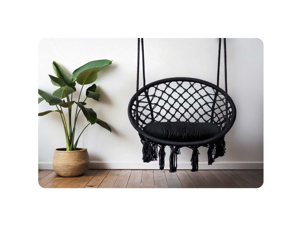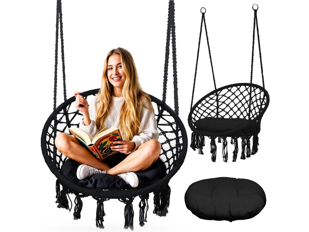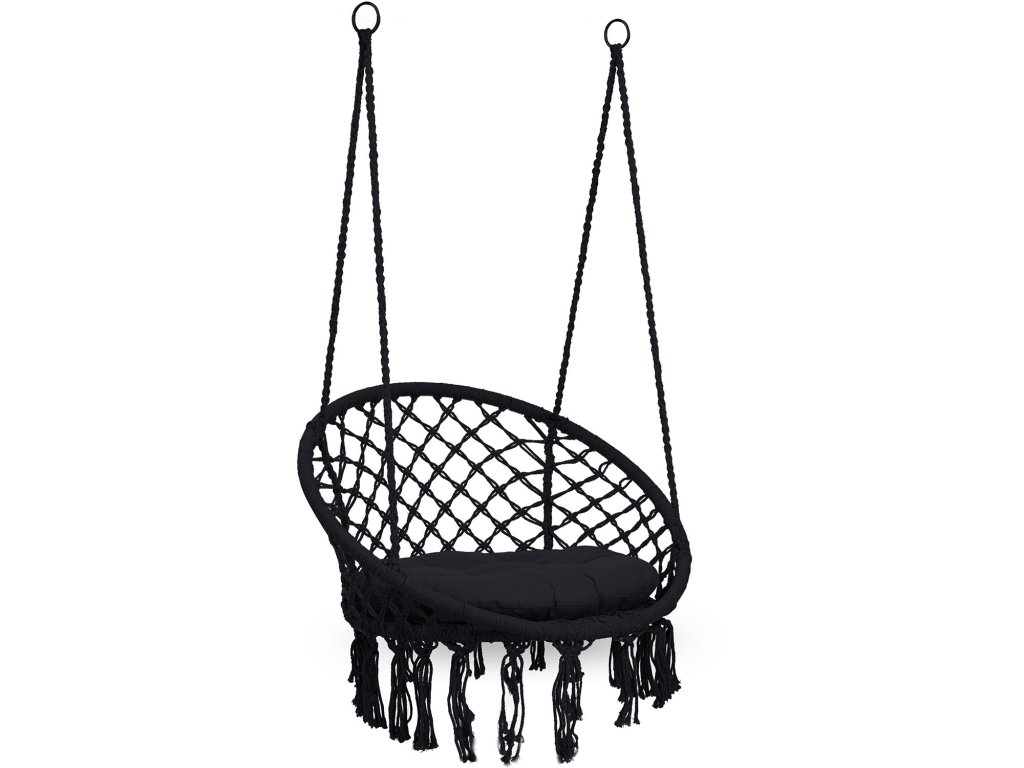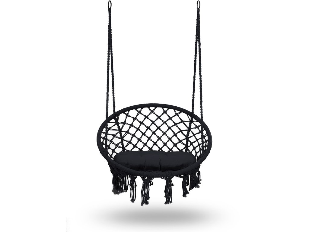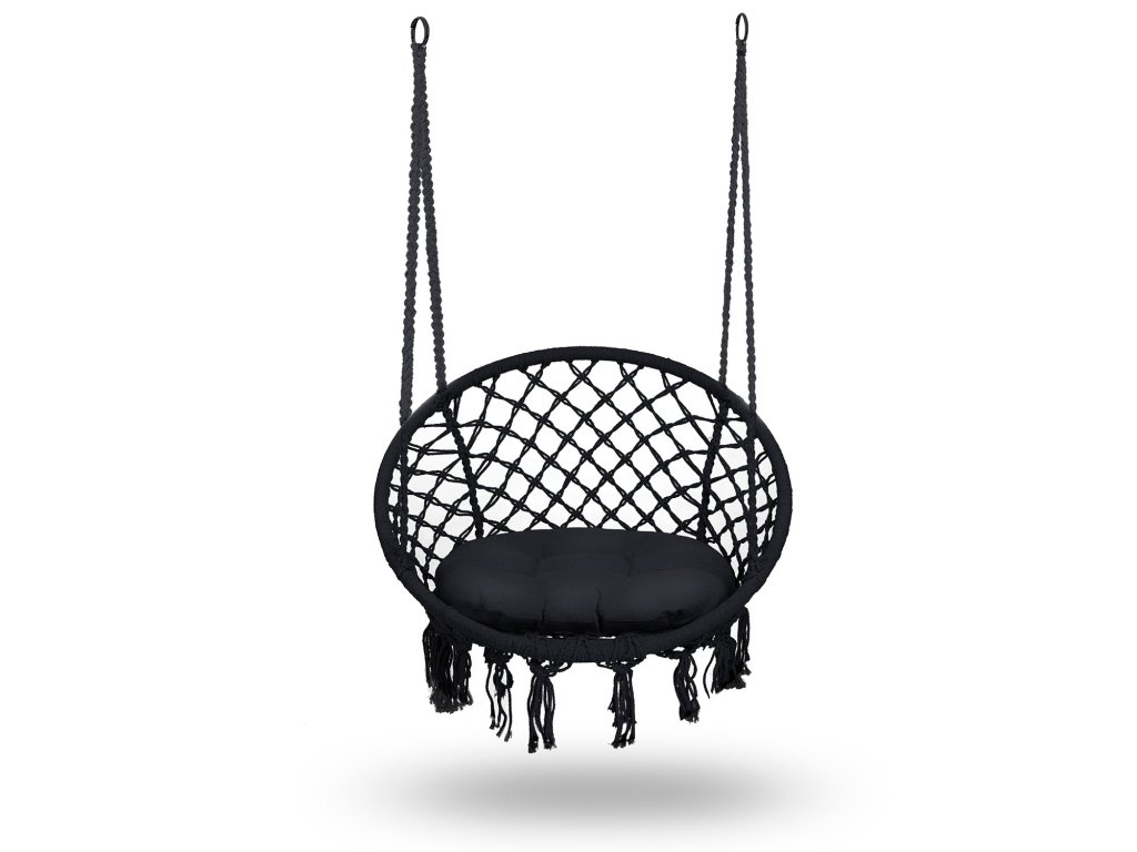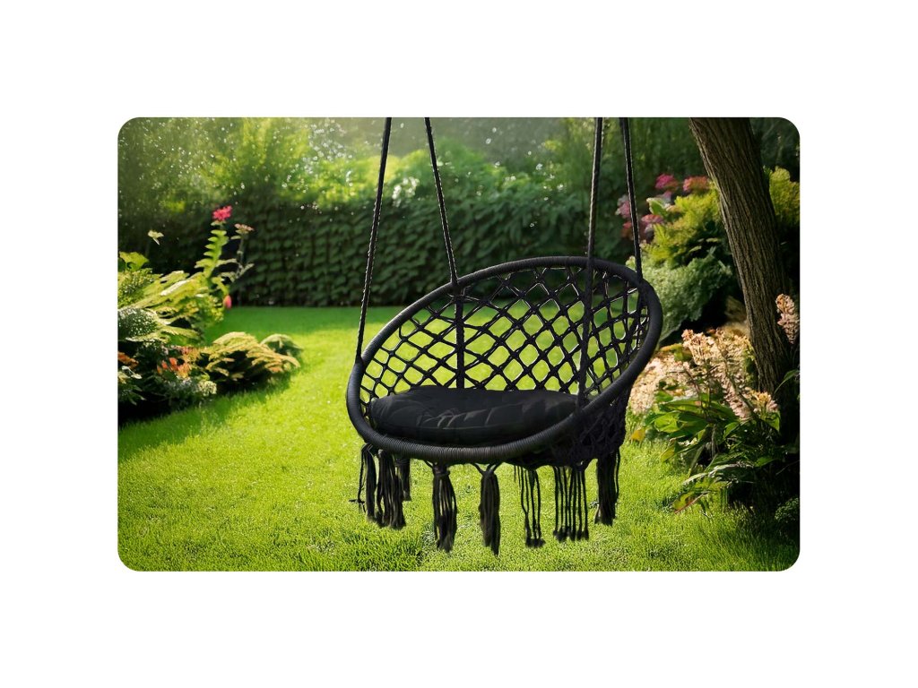 Scaun de grădină suspendat tip leagăn BOHO negru