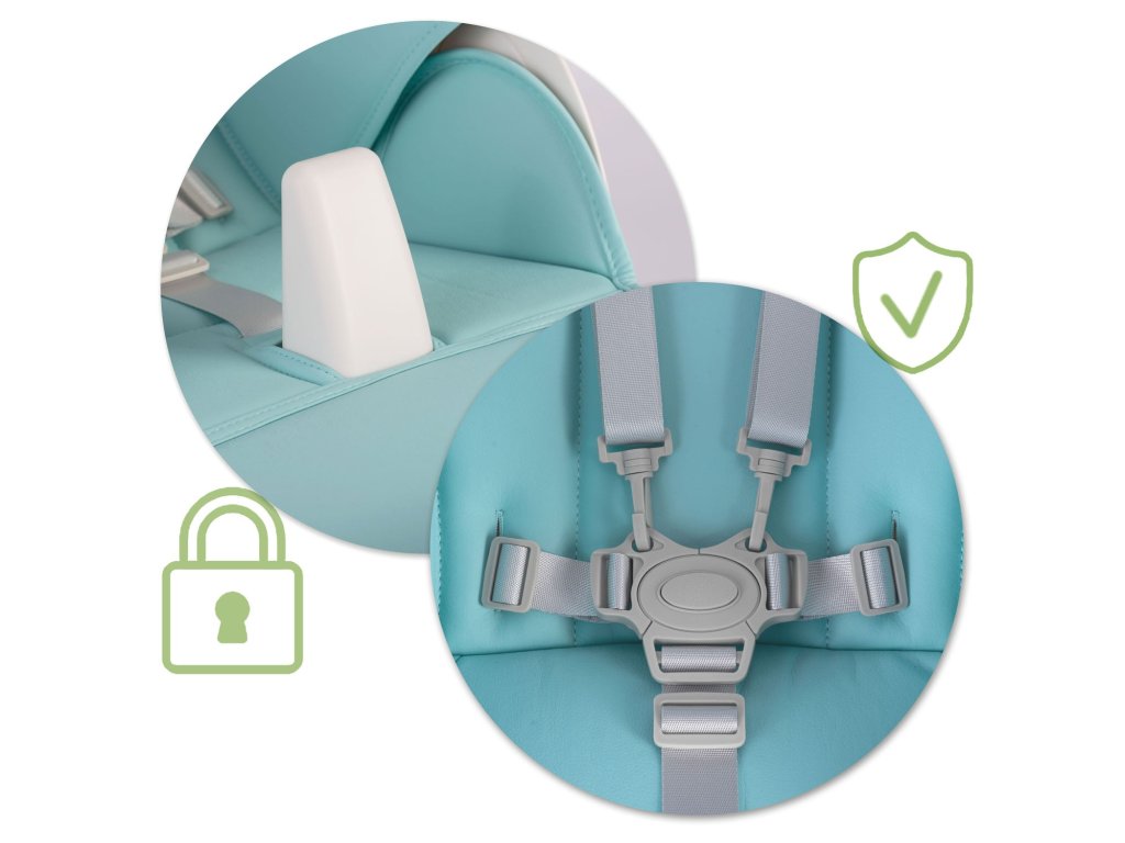 - Suplimentar asigurare, care previne ieșirea accidentală a copilului din scaun. Pot fi complet demontate, atunci când nu mai sunt necesare.