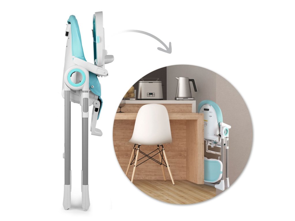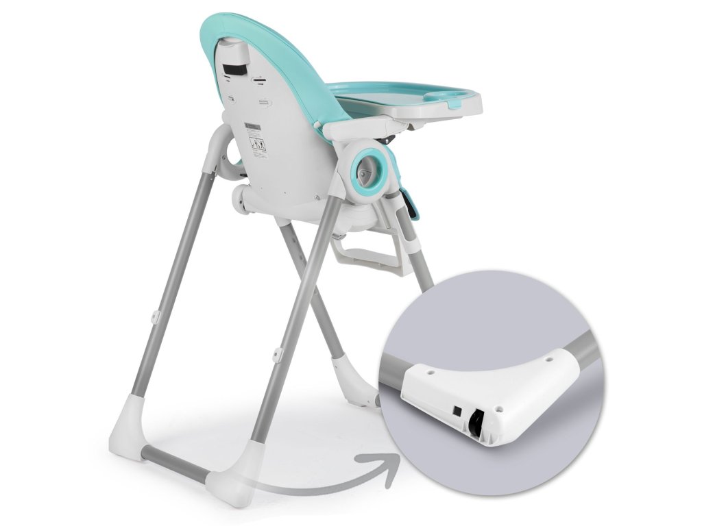 - puteți regla poziția tăvii sau o puteți demonta atunci când doriți să scoateți copilul din scaun sau să-l conectați la masa de familie