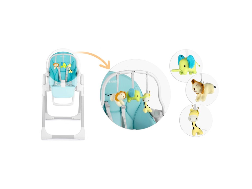 Scaun de hrănire cu masă, șezlong Belo albastru + arc