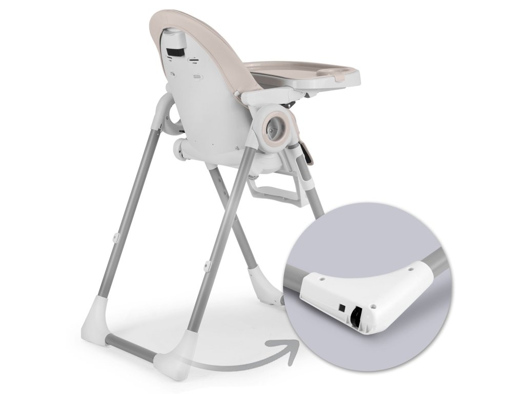 - puteți regla poziția tăvii sau o puteți scoate când doriți să scoateți copilul din scaunul înalt sau să îl aduceți la masă pentru cina de familie.