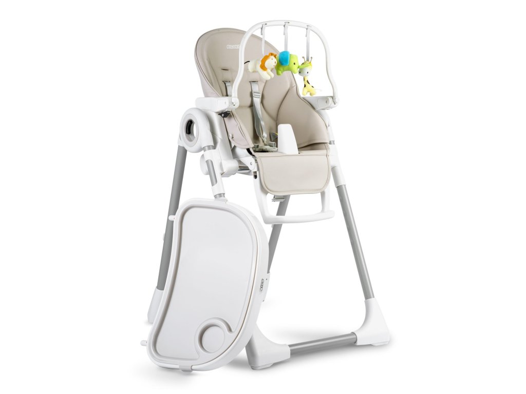 - puteți regla poziția tăvii sau o puteți demonta atunci când doriți să scoateți copilul din scaun sau să-l puneți la masă pentru cină în familie