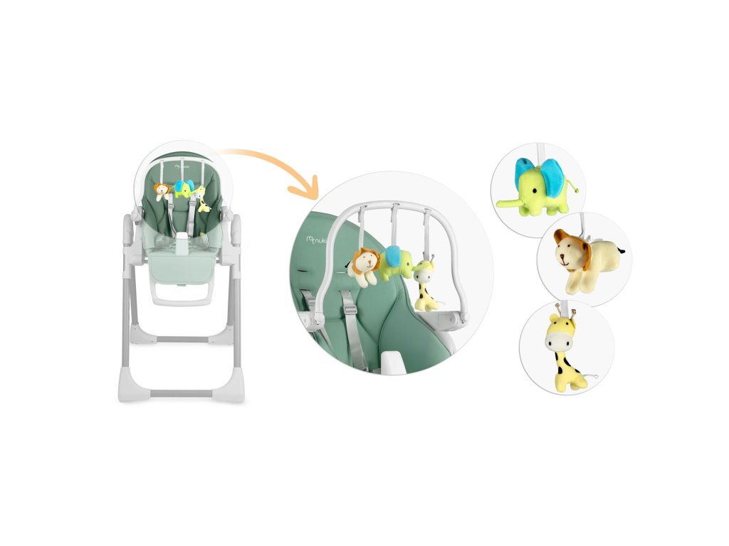 Scaun de masă pentru copii Belo verde + bara de jucării