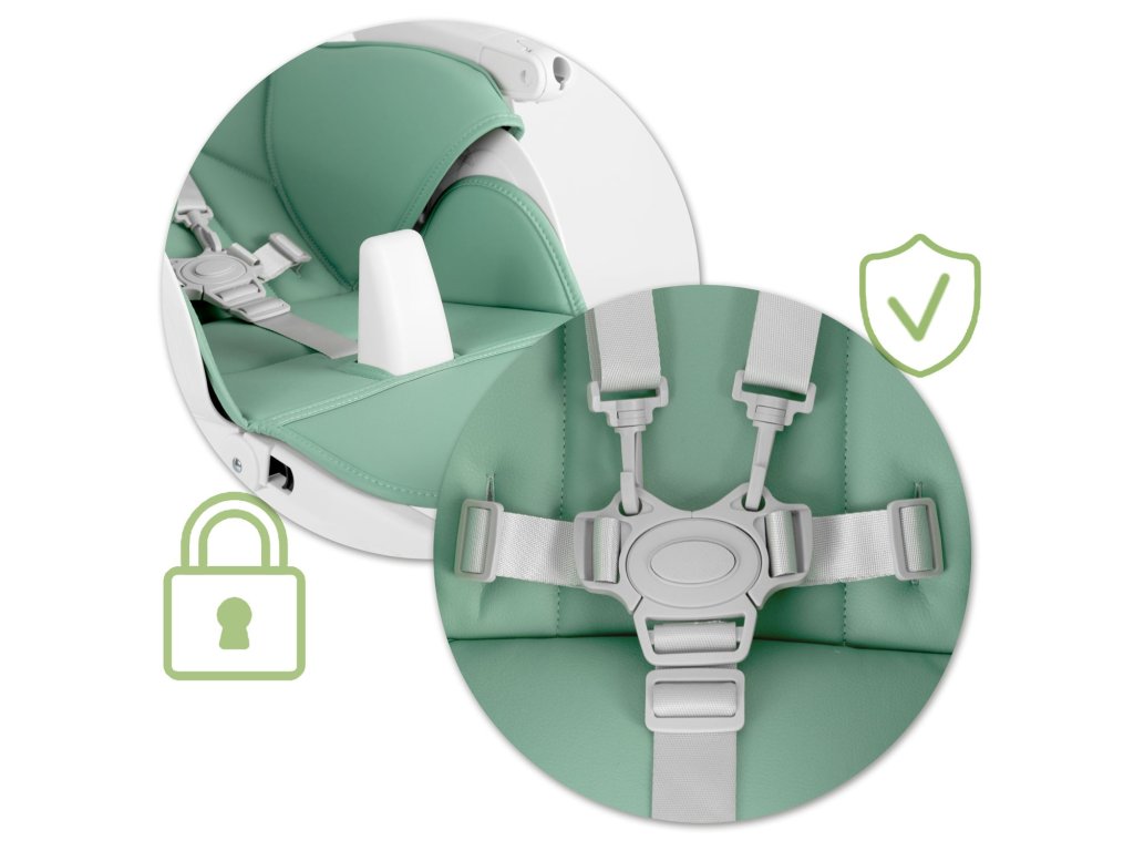 - Funcție de leagăn - datorită spătarului și suportului pentru picioare ajustabile, puteți utiliza scaunul Belo ca leagăn chiar din primele luni de viață ale bebelușului dumneavoastră!