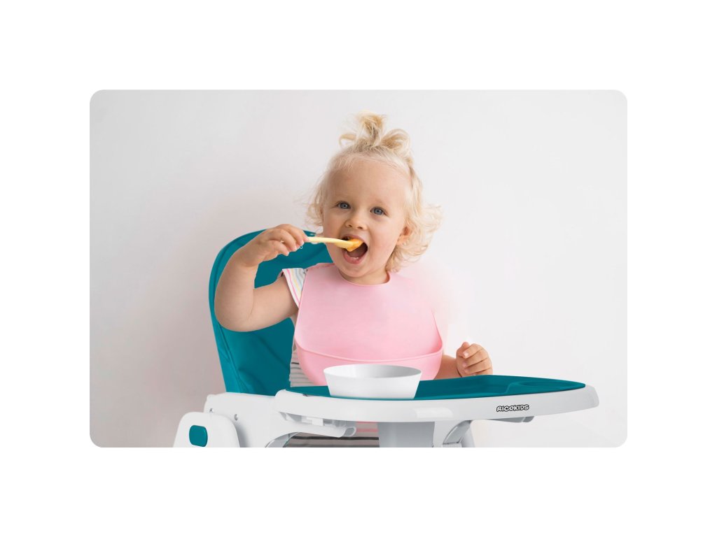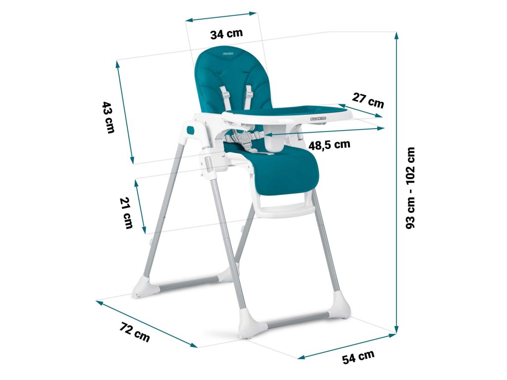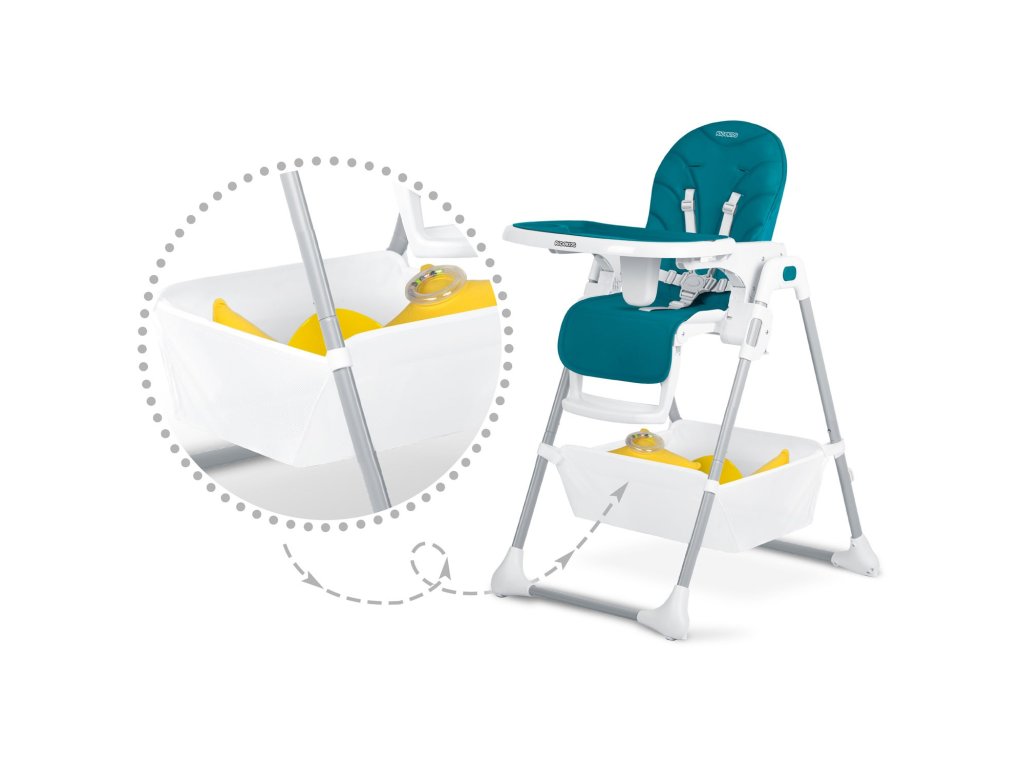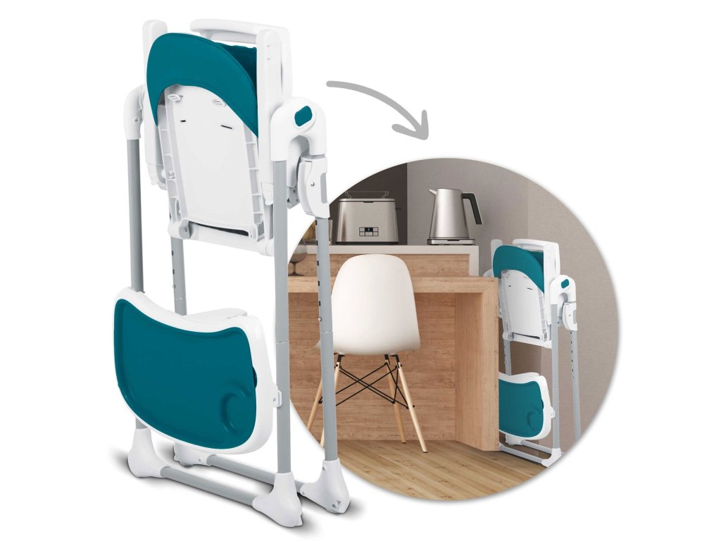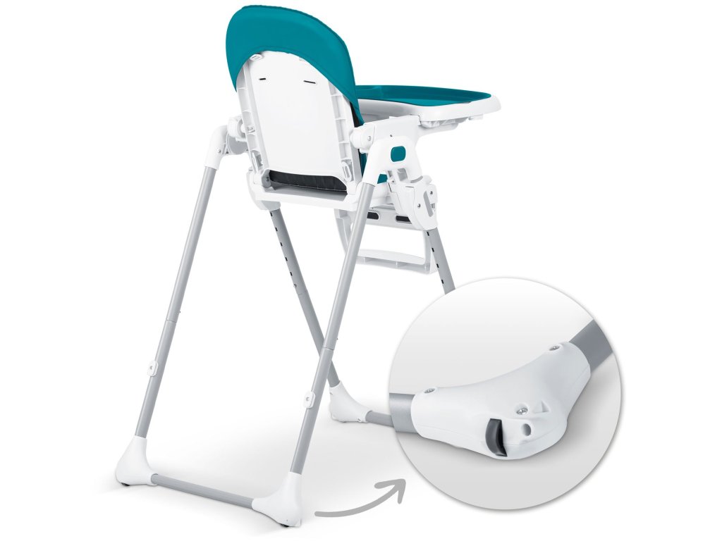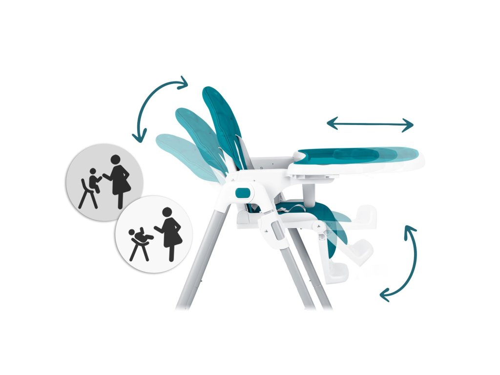 Scaunul înalt permite reglarea liberă a distanței tăvii față de copil. Poate fi, de asemenea, complet demontat oricând.