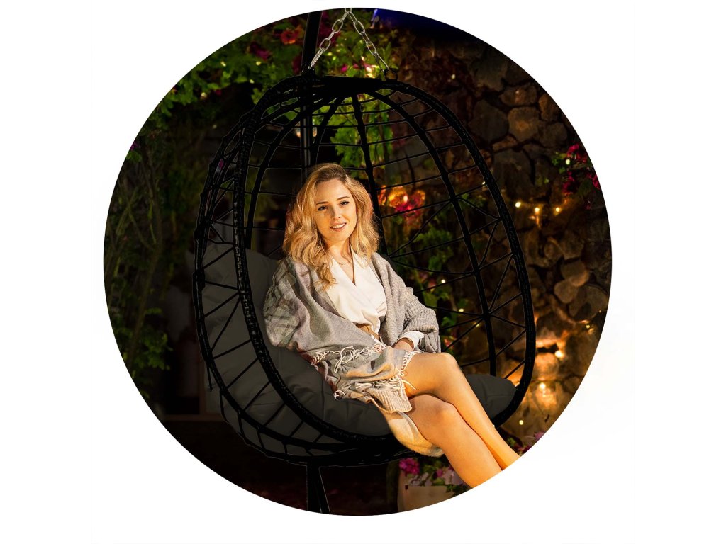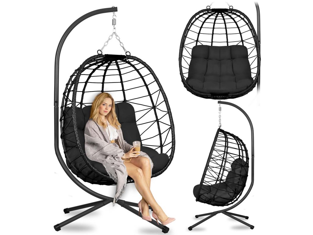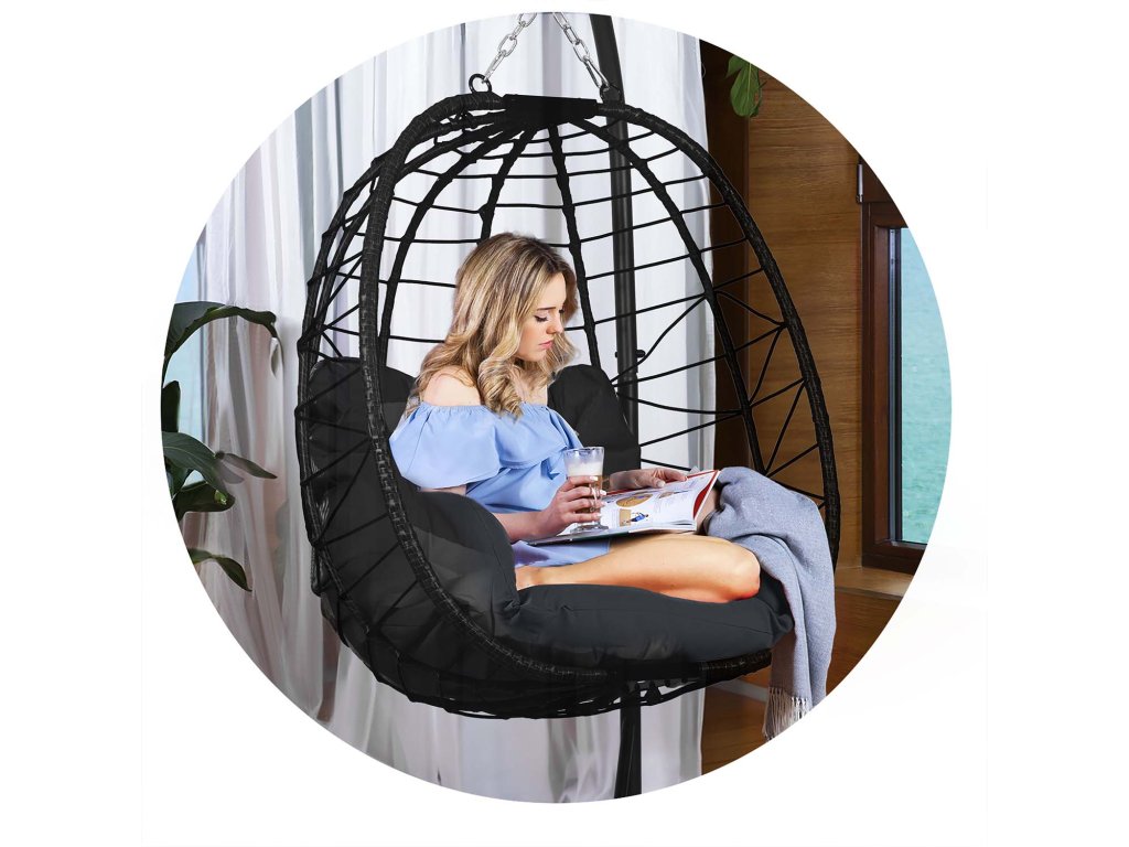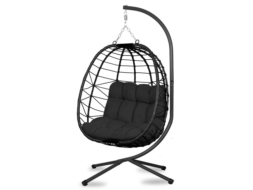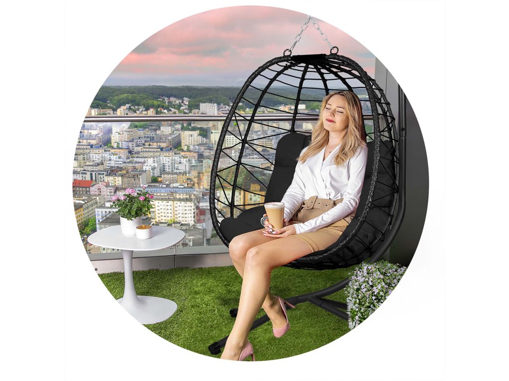 Scaun suspendat de grădină Tihuana negru + perne negre Sofotel