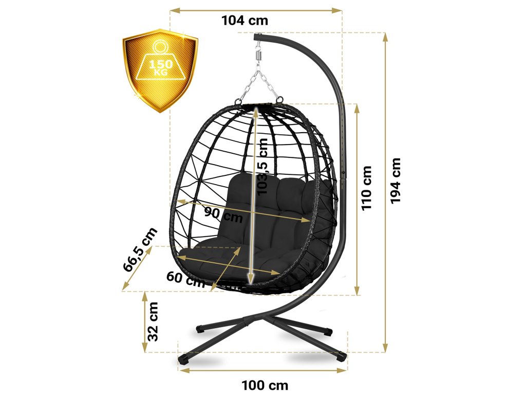 lanț solid și cârlig pentru fixare cu arc!Adâncimea coșului face ca fotoliu să nu fie doar aspectuos, ci și foarte confortabil.