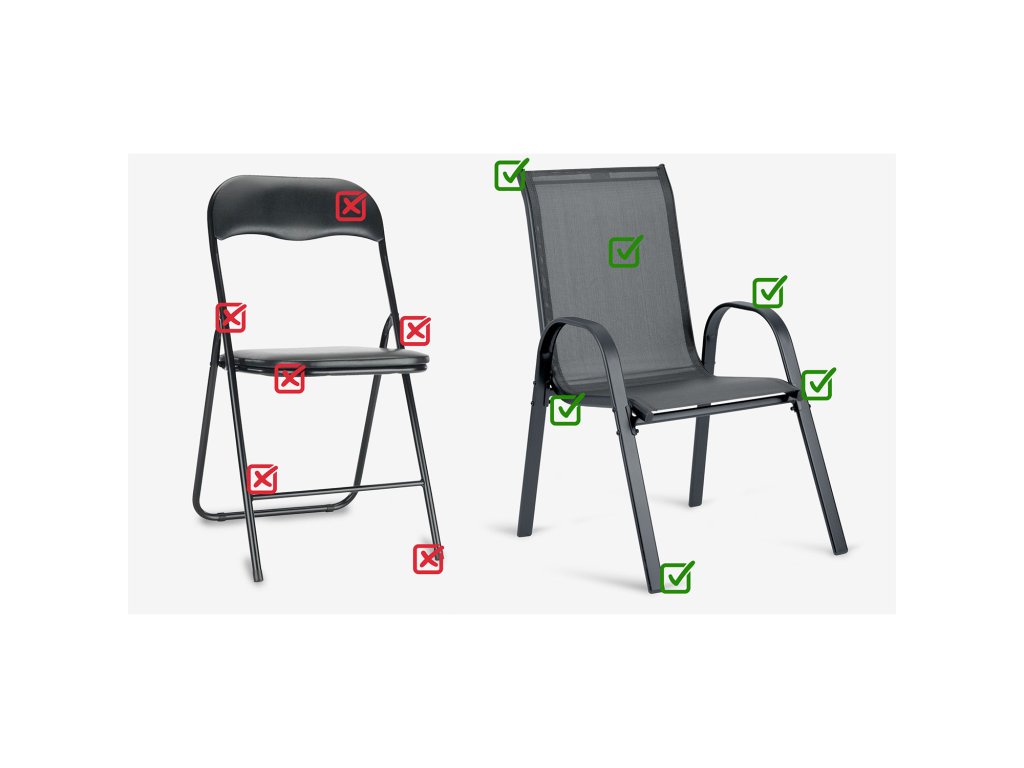 Scaunele pot fi stivuite — așezate unul peste altul.