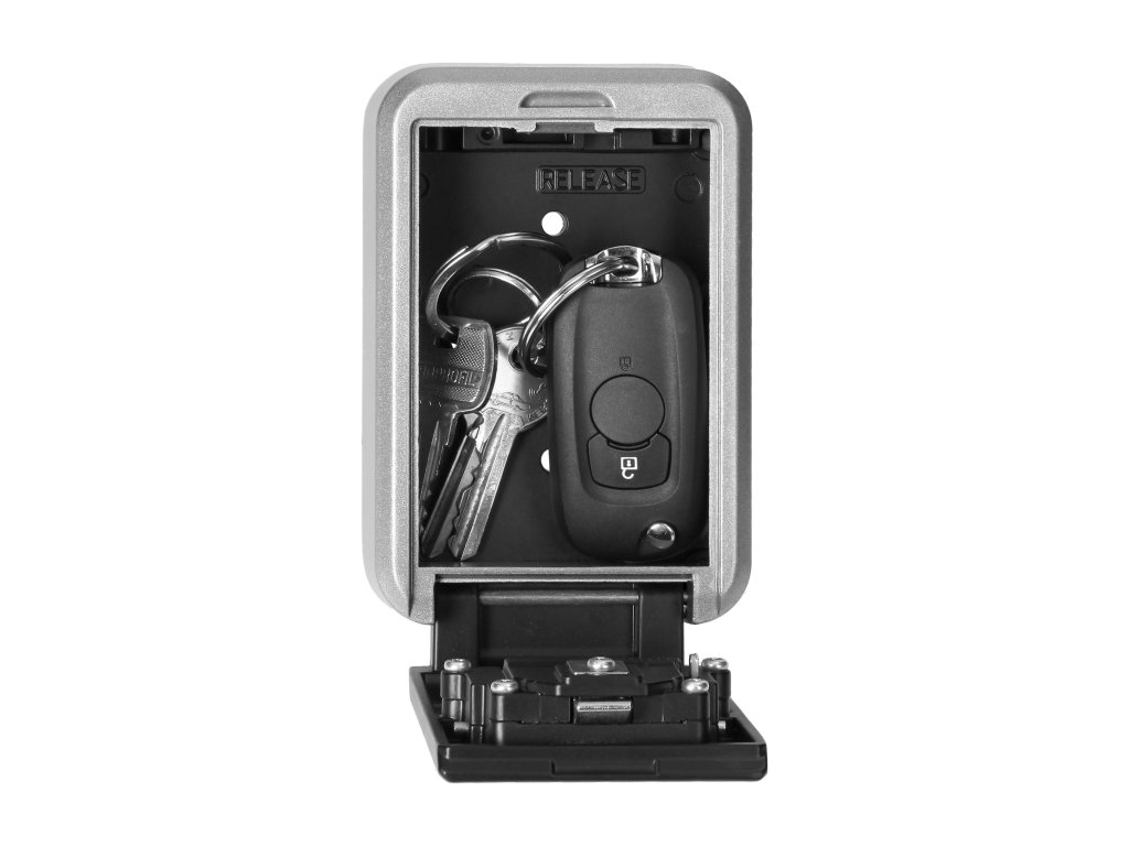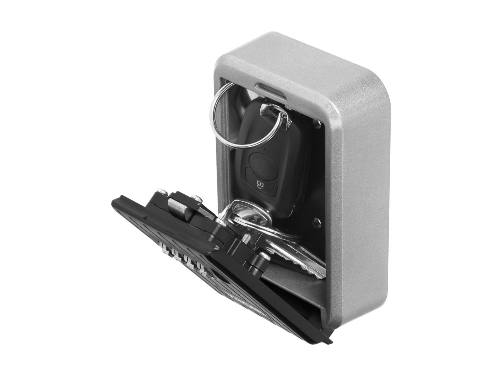 Seif compact pentru chei, potrivit pentru montare pe perete, atât în interior, cât și în exterior. Acest seif este o soluție excelentă atunci când doriți să depozitați cheile într-un loc sigur. Încuietoarea cu patru cifre oferă 10.000 de combinații posibile de cod, iar mecanismul utilizat previne încercările de a sparge panoul frontal. Materialele utilizate garantează durabilitatea produsului pe termen lung împotriva condițiilor meteorologice. Șuruburile de montare sunt incluse.Specificații Tehnice