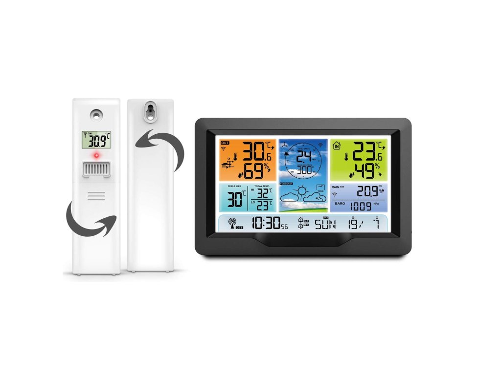 - Datorită acestui fapt, poate efectua până la 5 măsurători: 1 de la stația în sine, 1 de la senzorul extern multifuncțional și 1 de la senzorii prezentați la licitație.
