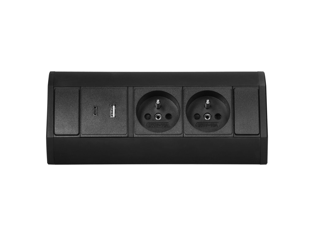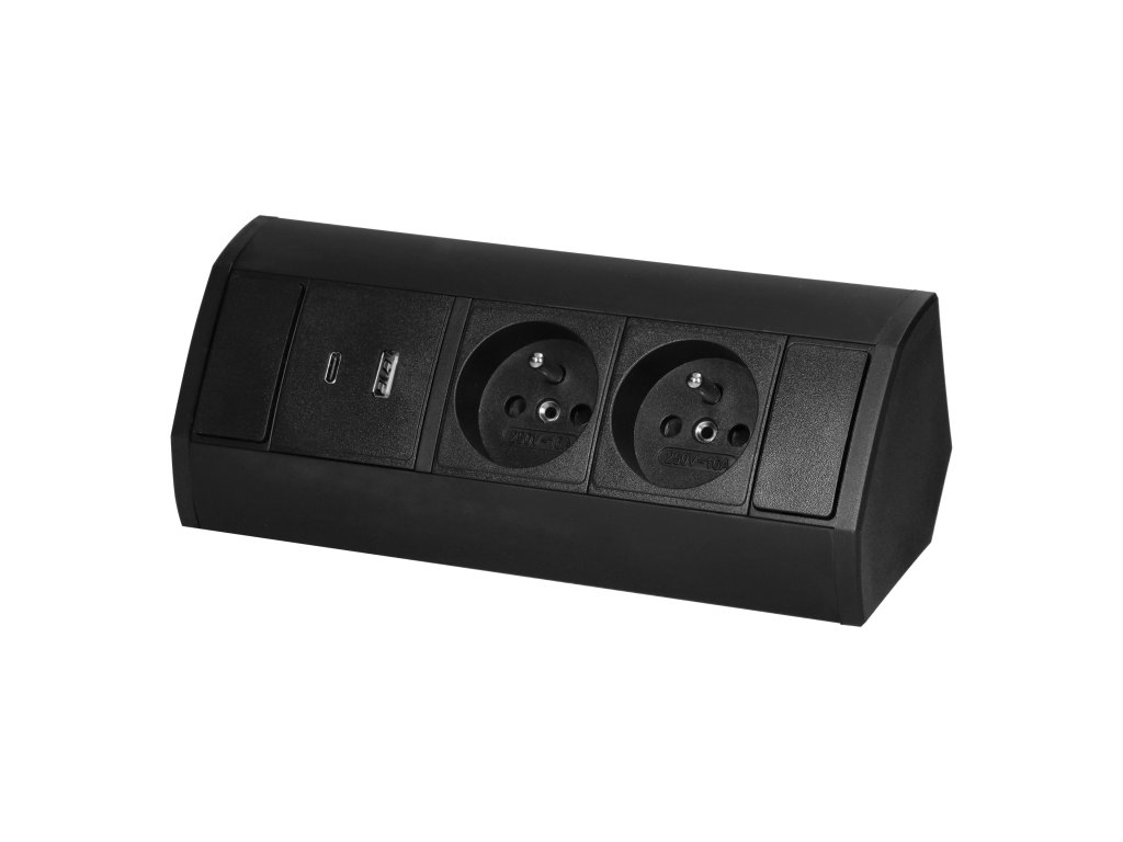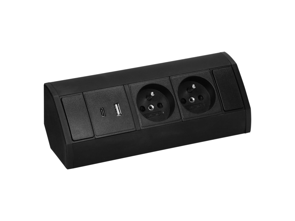 Priză de mobilier neagră 2x220V+USB(A+C)