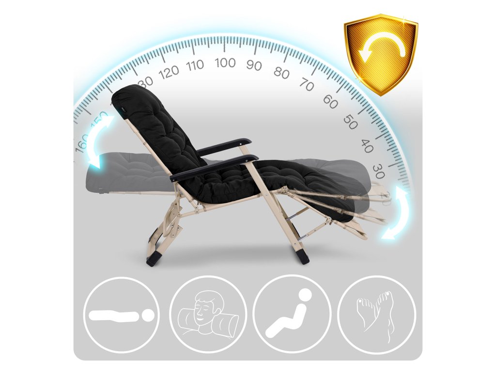 Construcție solidă din materiale puternice și durabile asigură longevitatea și stabilitatea șezlongului.