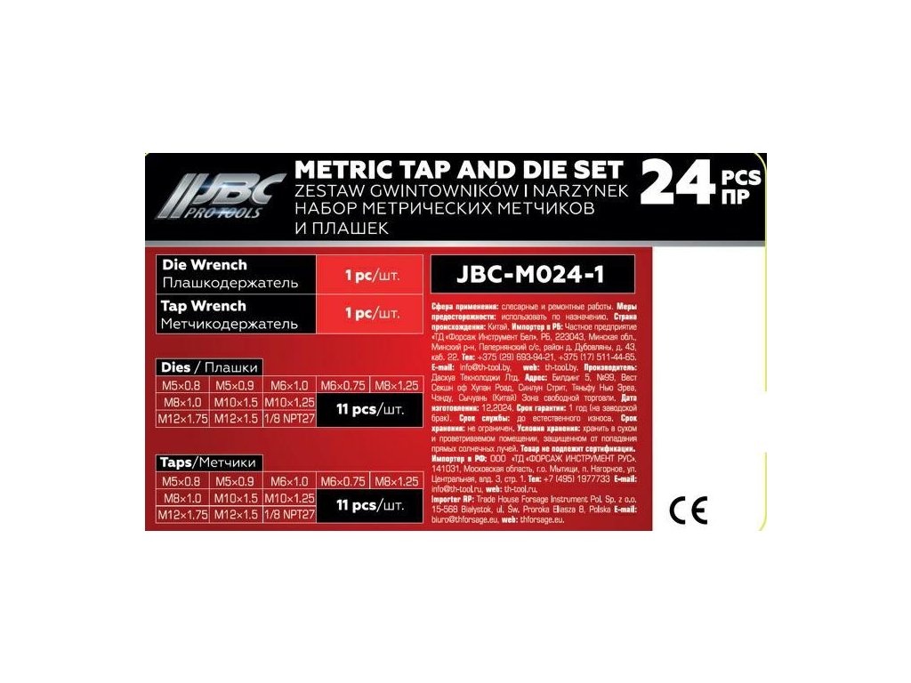 Set burghiu și inele filetate 24 buc.