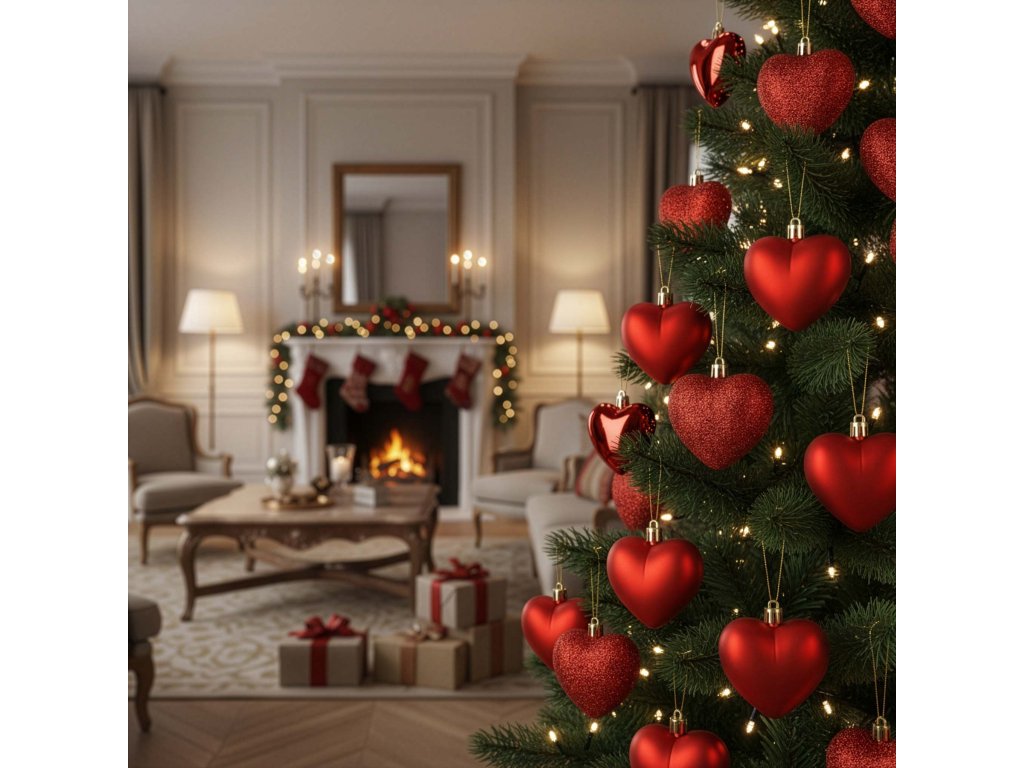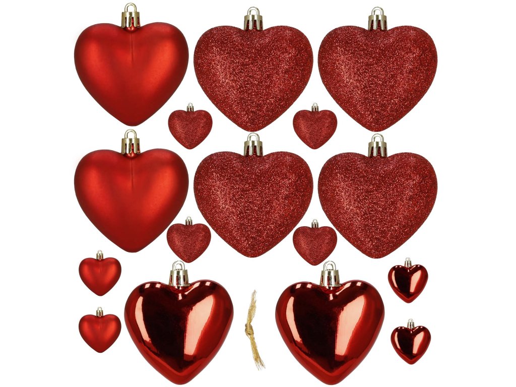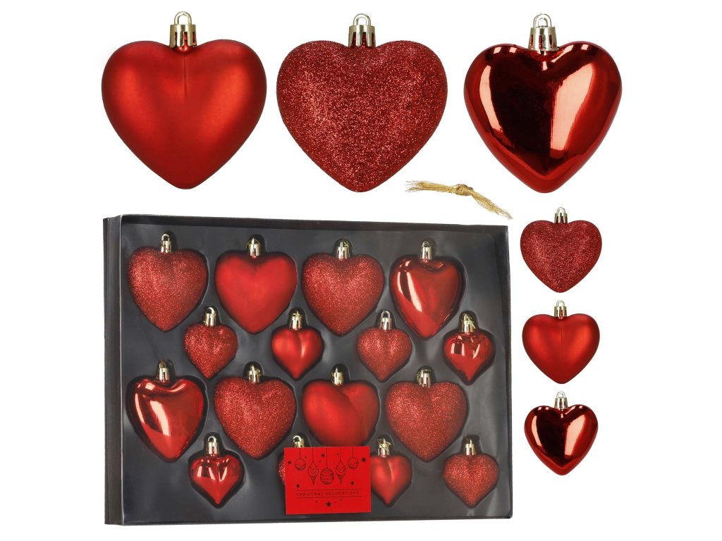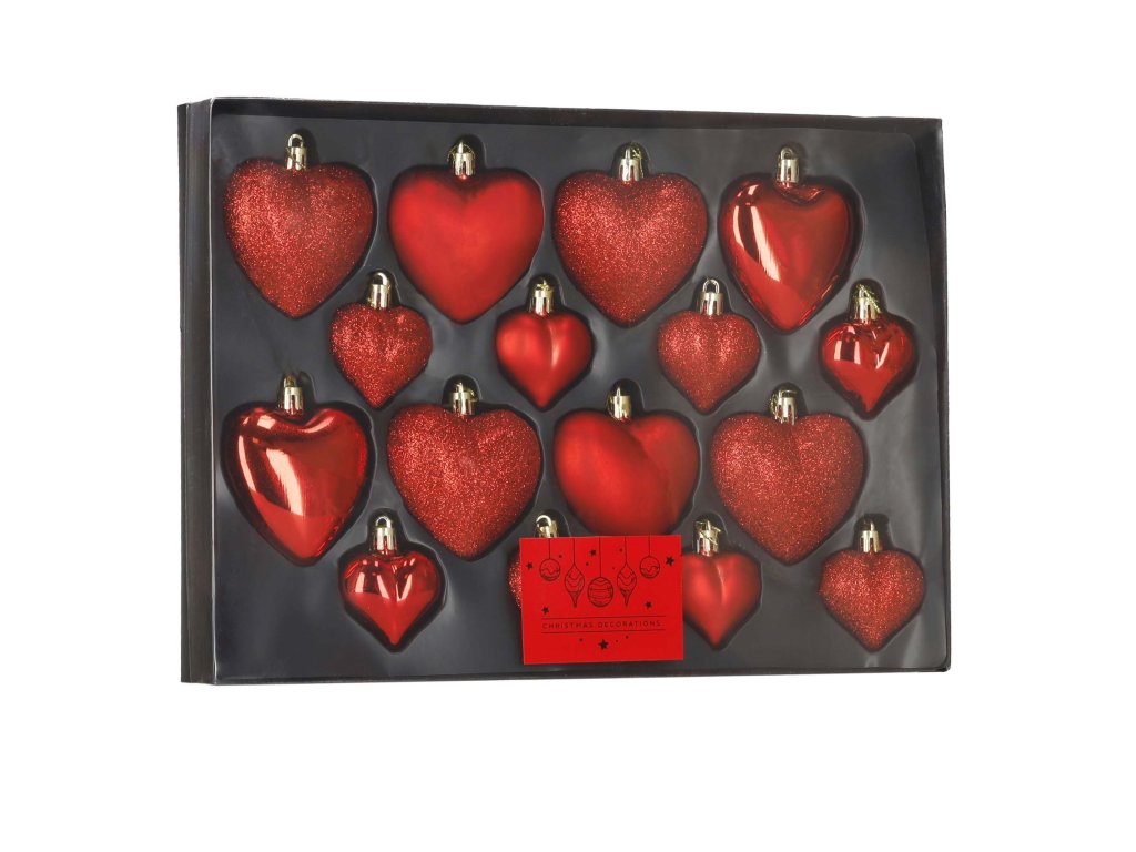 Set de 16 Bile de Crăciun în Formă de Inimă CA0959