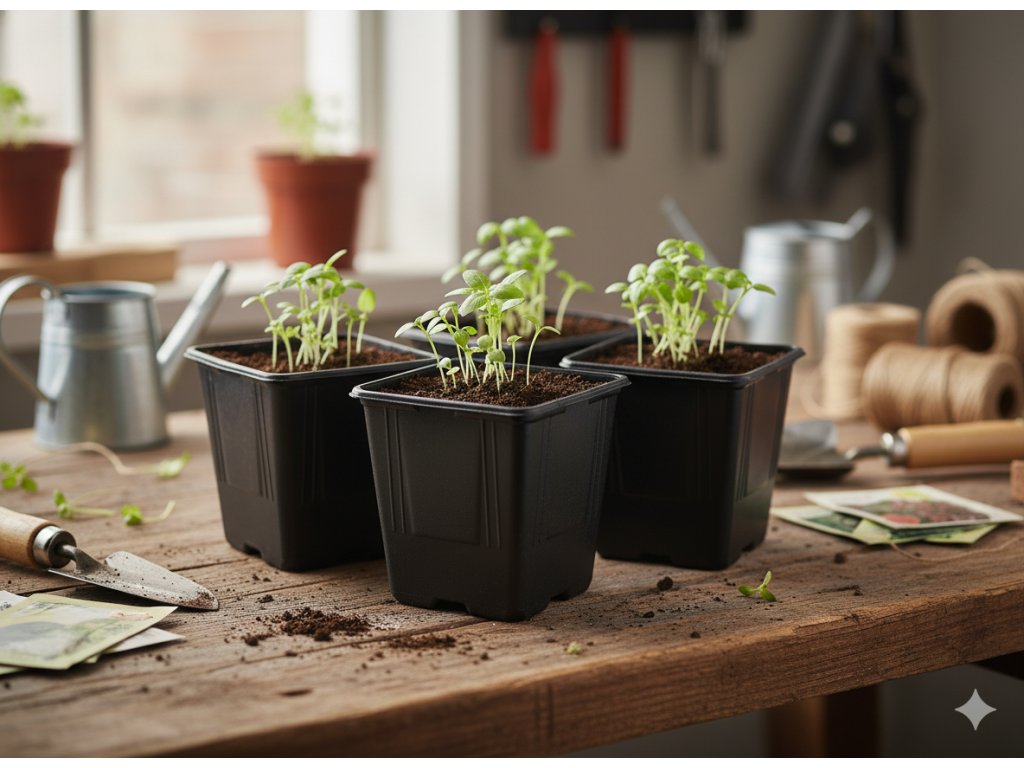 Set de 5 ghivece pentru plantarea plantelor.Ghivecele au orificii de drenaj care asigură circulația apei.