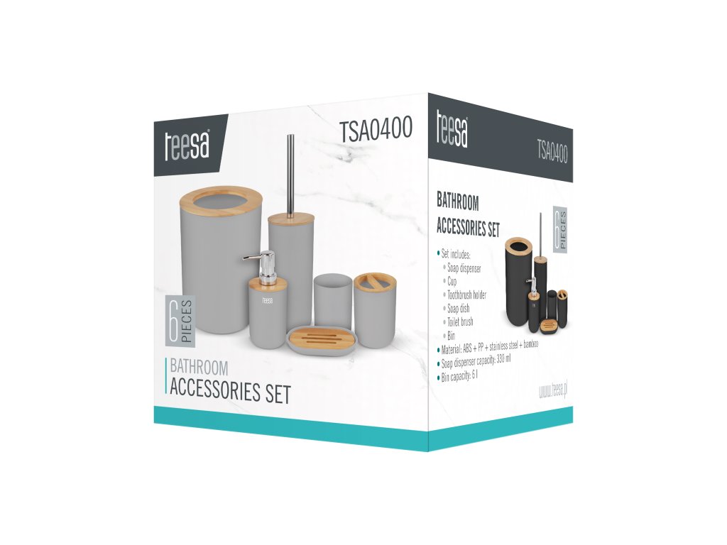 Fie că sunteți interesat de accesorii de baie albe sau accesorii de baie negre cu lemn, acum nu mai trebuie să căutați piese individuale pentru a crea setul perfect. Accesoriile de baie moderne Teesa sunt toate într-un singur stil, așa că acest set unic va răspunde tuturor nevoilor dumneavoastră. Mai ales că este disponibil în mai multe variante de culoare. Alegând culoarea potrivită, veți crea o compoziție atractivă și stilistic unitară a accesoriilor în baie.