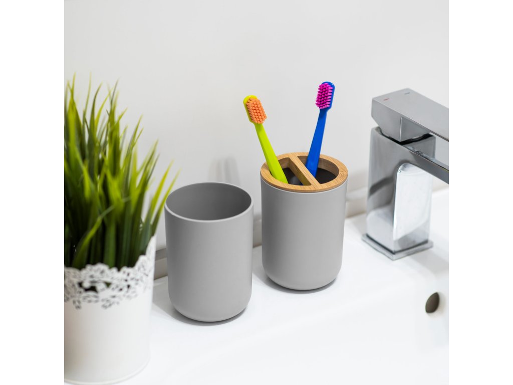 Include accesorii de baie, cum ar fi un suport de săpun, un dozator de săpun, un pahar, un pahar pentru periuțe de dinți, precum și o perie de toaletă și un coș de gunoi. Toate accesoriile de baie sunt fabricate din plastic de înaltă calitate cu adaos de lemn de bambus.