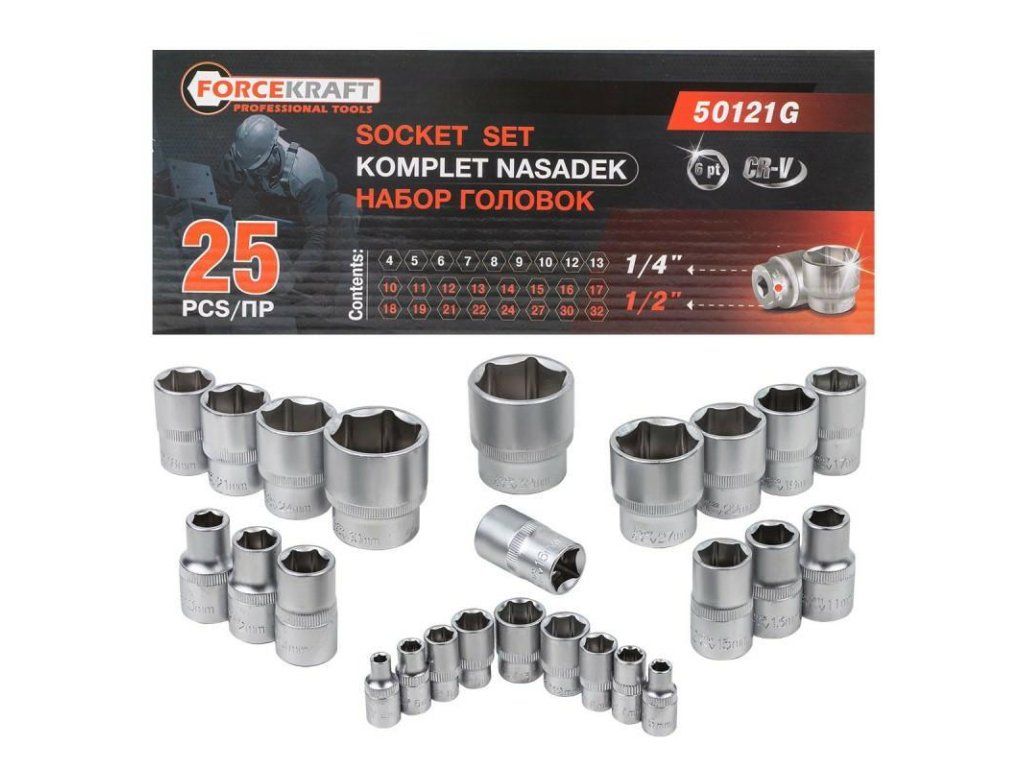 Set de adaptoare 1/4" & 1/2" 25 bucati (4-32mm) (6 colțuri)