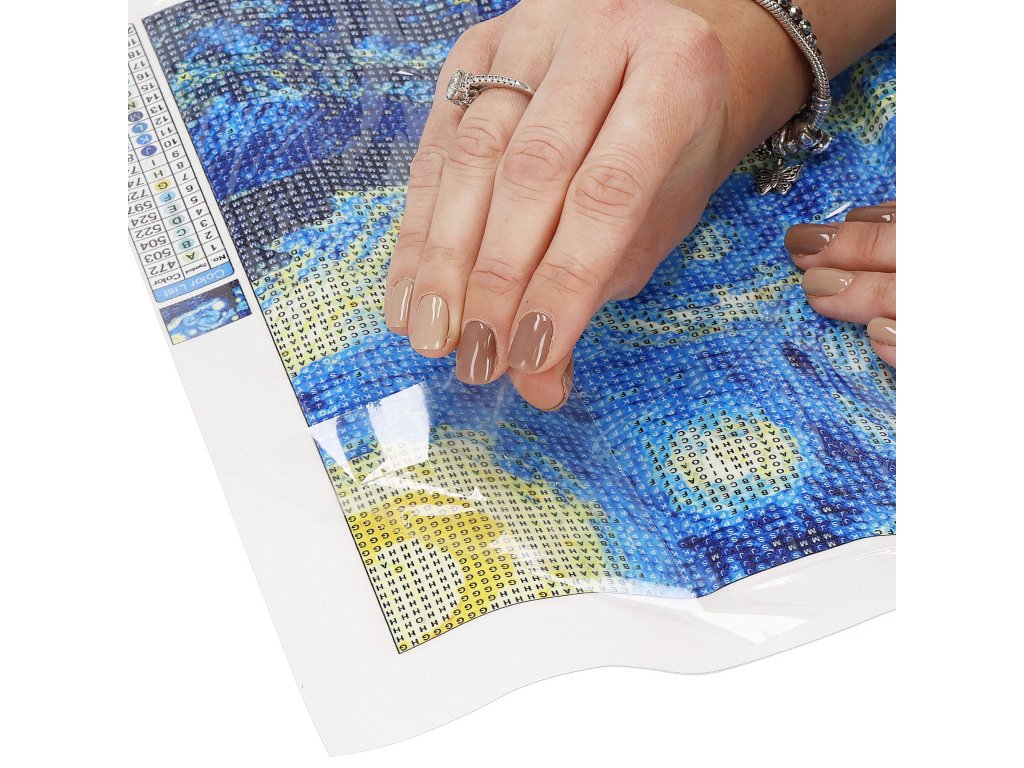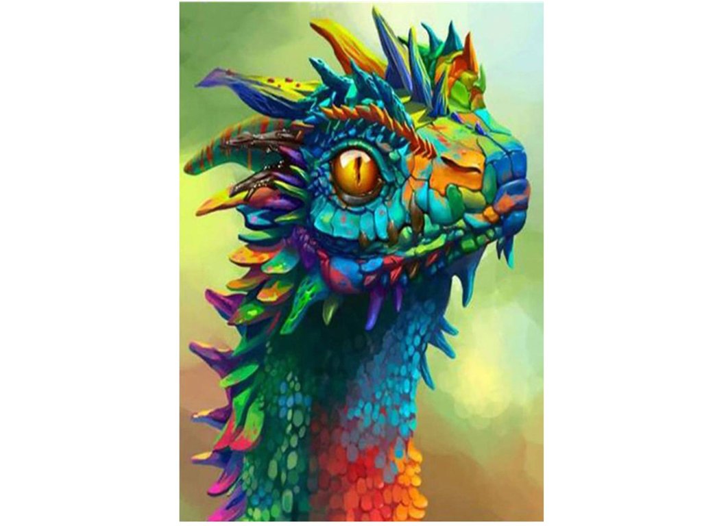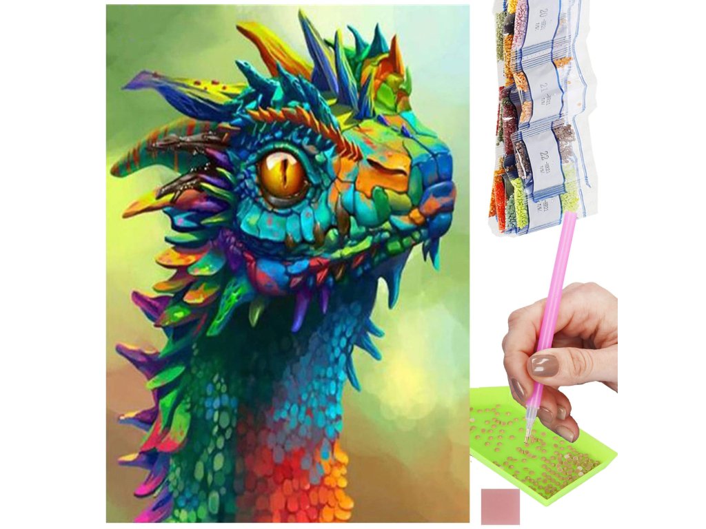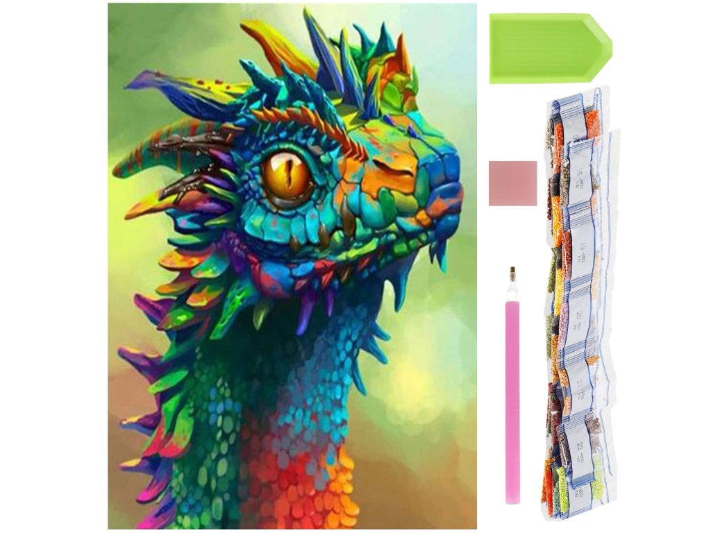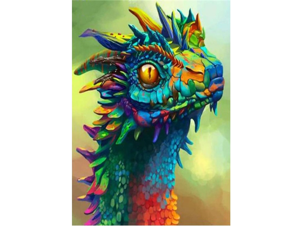 1x pânză robustă cu imagine imprimată, afișând capul dragonului și un index care asociază literele cu culorile și culorile cu numere ce determină culoarea diamantului