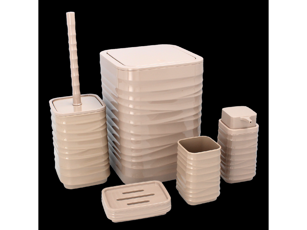 Set de baie 5-piese pătrat în culoarea maro, fabricat din plastic.Setul include: