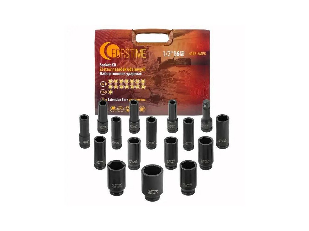Set de capete de impact 1/2" hexagonale 16 bucăți
