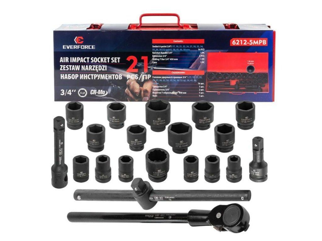 Chei cu impact 3/4'' 21ks 6-fațete 17-50mm cutie