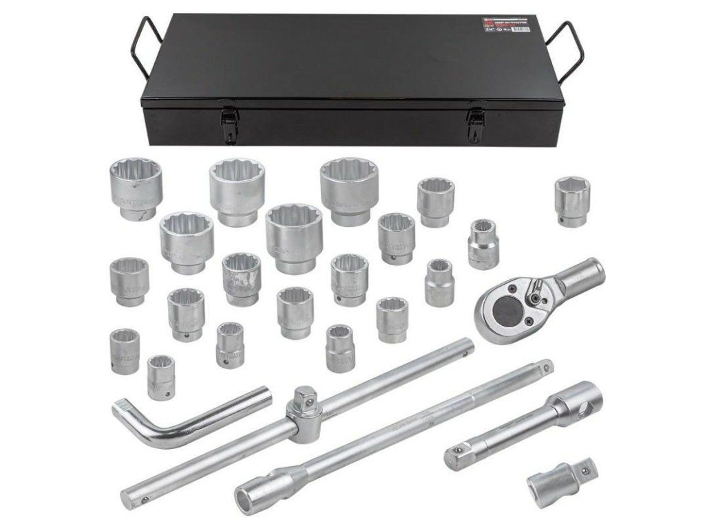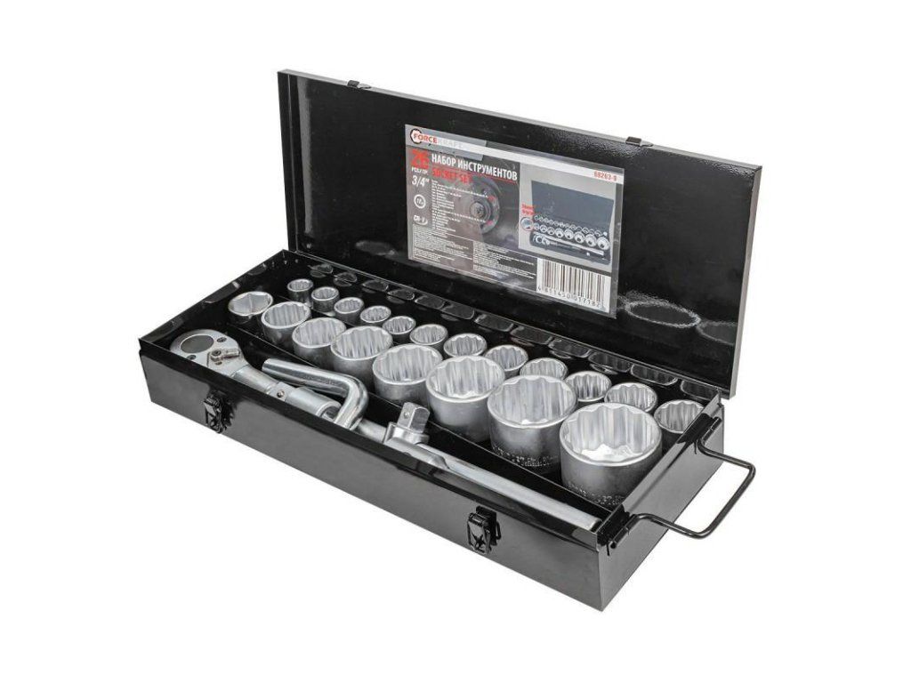 Set de unelte pentru chei cu ratchet 3/4" 12-ungulate 26ks valiză