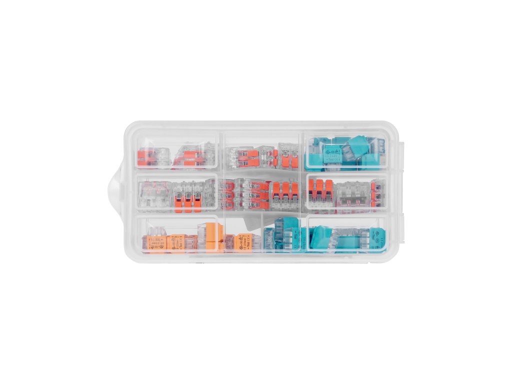 - Set complet: Conține până la 290 de bucăți de diferite tipuri de conectori push-in și cleme, acoperind o gamă largă de utilizări în instalațiile electrice.