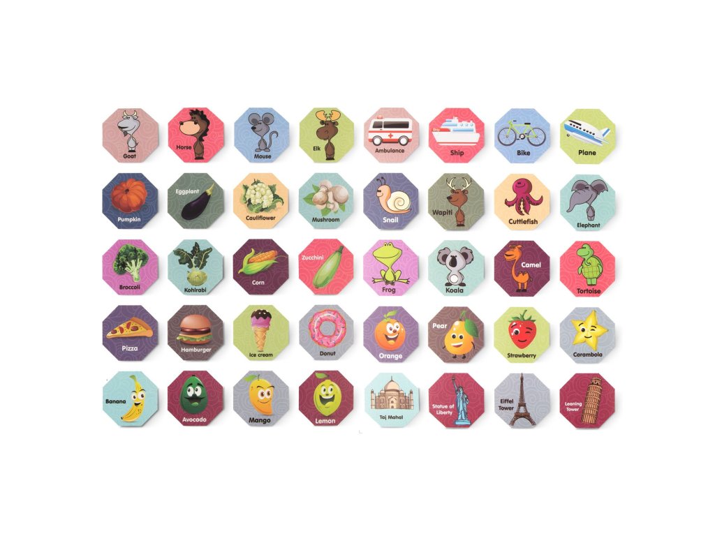 - conține: cuburi de construcție, autocolante, bile, cuburi transparente,