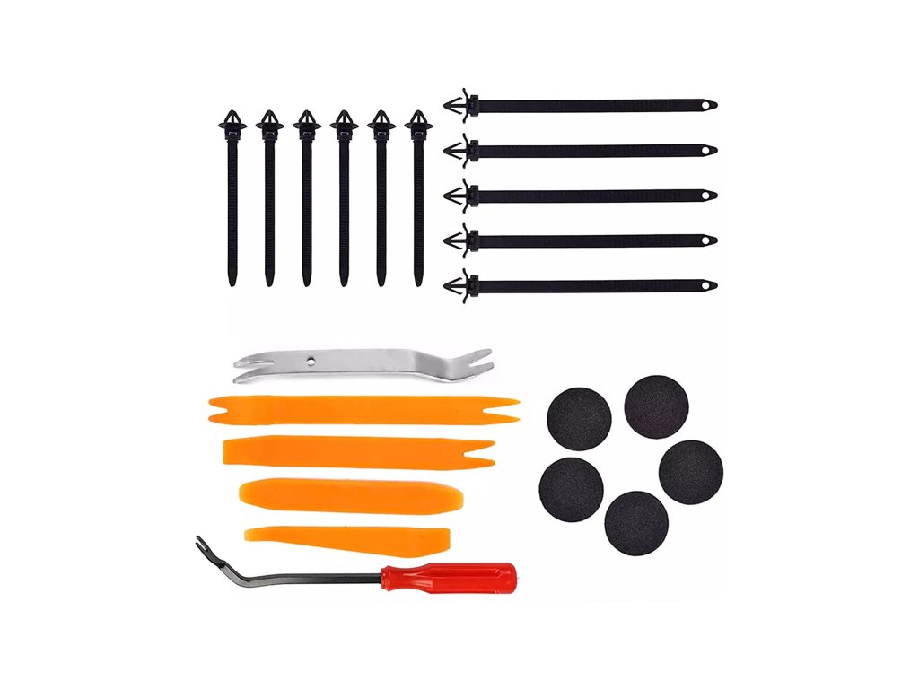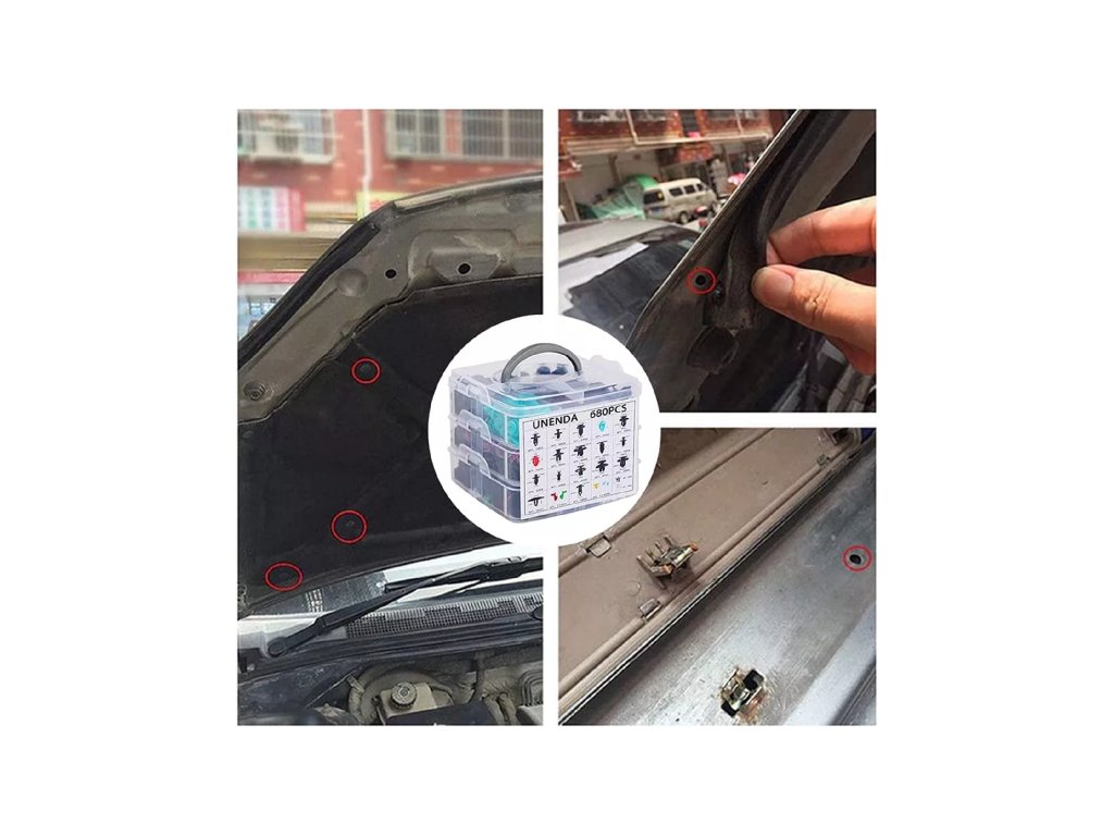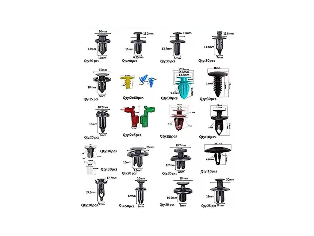 - Set complet: 23 de dimensiuni diferite de cleme pentru diverse aplicații auto, împreună cu o multitudine de unelte necesare pentru montarea și demontarea acestora.