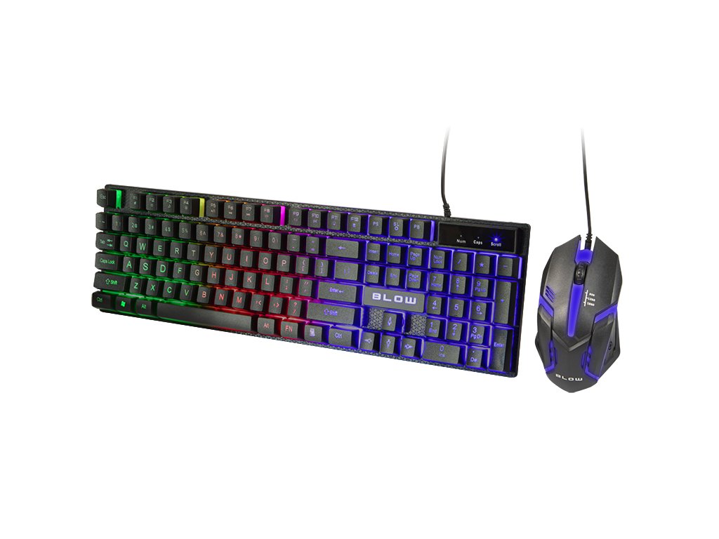 Număr de butoane: 3 + rotițăRezoluție maximă: 800/1200/1600 DPISuprafață anti-alunecare: DAIluminare LED: DALungime cablu: 150 cm Set de la compania BLOW, compus dintr-o tastatură iluminată și mouse cu 3 butoane și rotiță. Ambele dispozitive sunt conectate prin interfața USB și cablul are o lungime de aproximativ 1,5 m. Setul este destinat în special jucătorilor care apreciază simplitatea combinată cu modernitatea și iluminarea LED foarte elegantă. Funcții principale Tastatură: