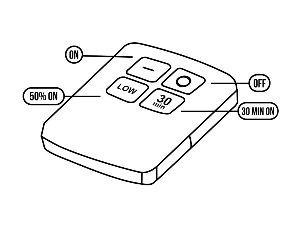 Lampa include o telecomandă, cu ajutorul căreia puteți nu numai să aprindeți și să stingeți luminile, dar și să schimbați intensitatea și să le aprindeți pentru 30 de minute.