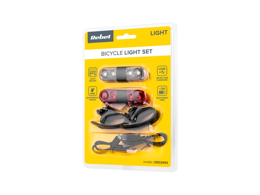 Conținutul pachetului: lampa frontală, lampa din spate, cablu micro USB##