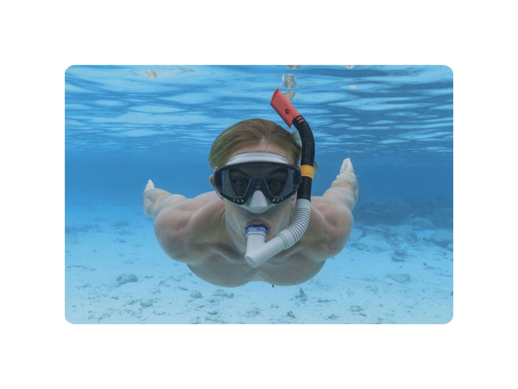 Acum poți să te scufunzi și să te bucuri de distracție în apă din plin! Masca de înot, care este parte a setului, are lentile din policarbonat
