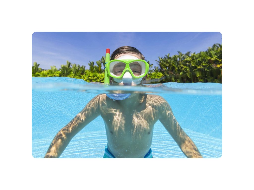 Acum te poți scufunda și bucura de distracție în apă din plin! Masca de înot inclusă în set are lentile din policarbonat