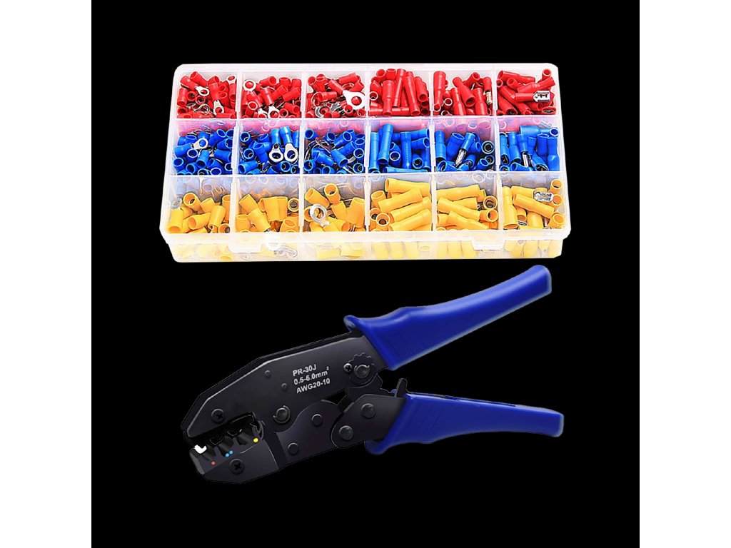 Set de conectori 700 bucăți + unealtă de sertizareCu setul robust compus dintr-o unealtă de sertizare și 700 de capete de cablu, se poate realiza rapid și precis o conexiune electrică. Unealta este concepută pentru un interval larg de sertizare (fălcile de sertizare în trei dimensiuni cu coduri de culoare) și este echipată cu un mecanism de ambreiaj care necesită puțină forță și asigură sertizarea corectă. Codarea culorilor pentru dimensiunile capetelor de cablu și ale falcilor de sertizare facilitează munca. Capetele de cablu standard sunt clasificate în mod clar într-un recipient de depozitare practic.