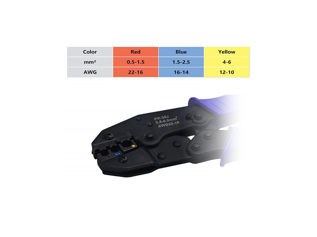 Roșu: AWG 22-18 este potrivit pentru conductorii/cablurile de 0,5-1,5 mm2