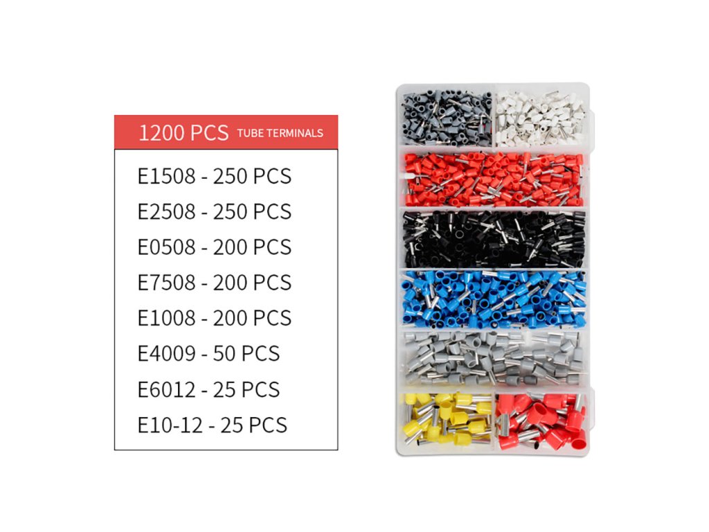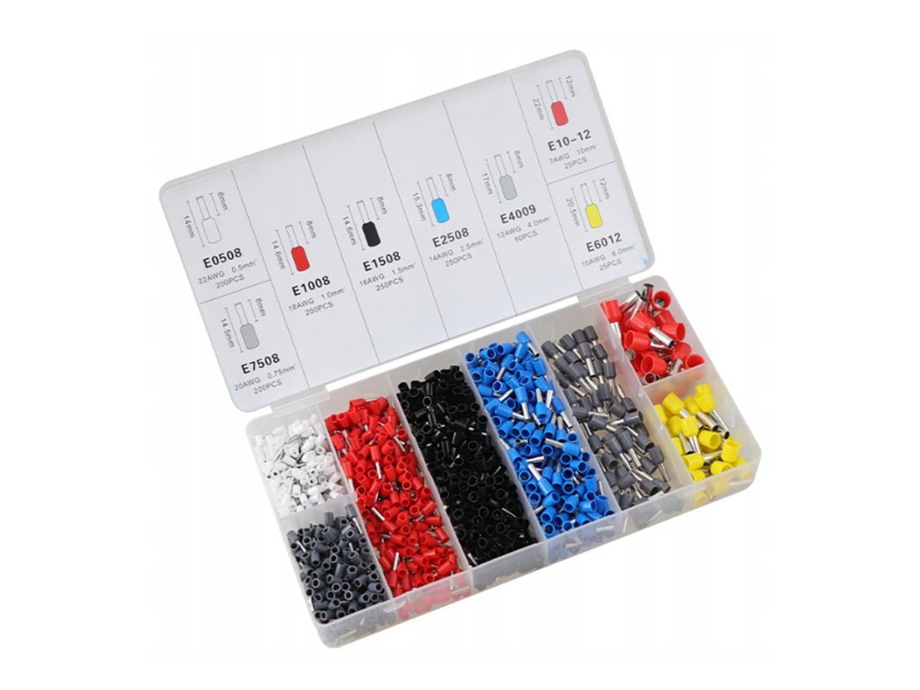 - Diverse dimensiuni și variante în funcție de tipul cablului și lungimea ciocului (de exemplu, E0508-Alb pentru cablu 0,5 mm2 cu lungimea ciocului de 8 mm etc.).