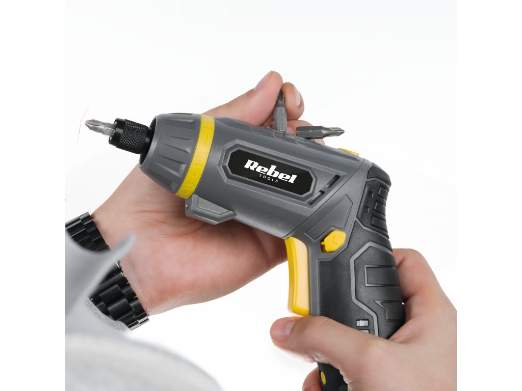 Șurubelnița cu acumulator RB-1003 din seria Rebel Tools este un produs care va atrage atenția pasionaților de bricolaj. Dispozitivul a fost proiectat pentru confortul și eficiența lucrărilor de atelier la domiciliu. Șurubelnița dispune de funcția de rotație spre dreapta și stânga, precum și de blocarea axului, ceea ce o face ideală pentru acest tip de sarcini.