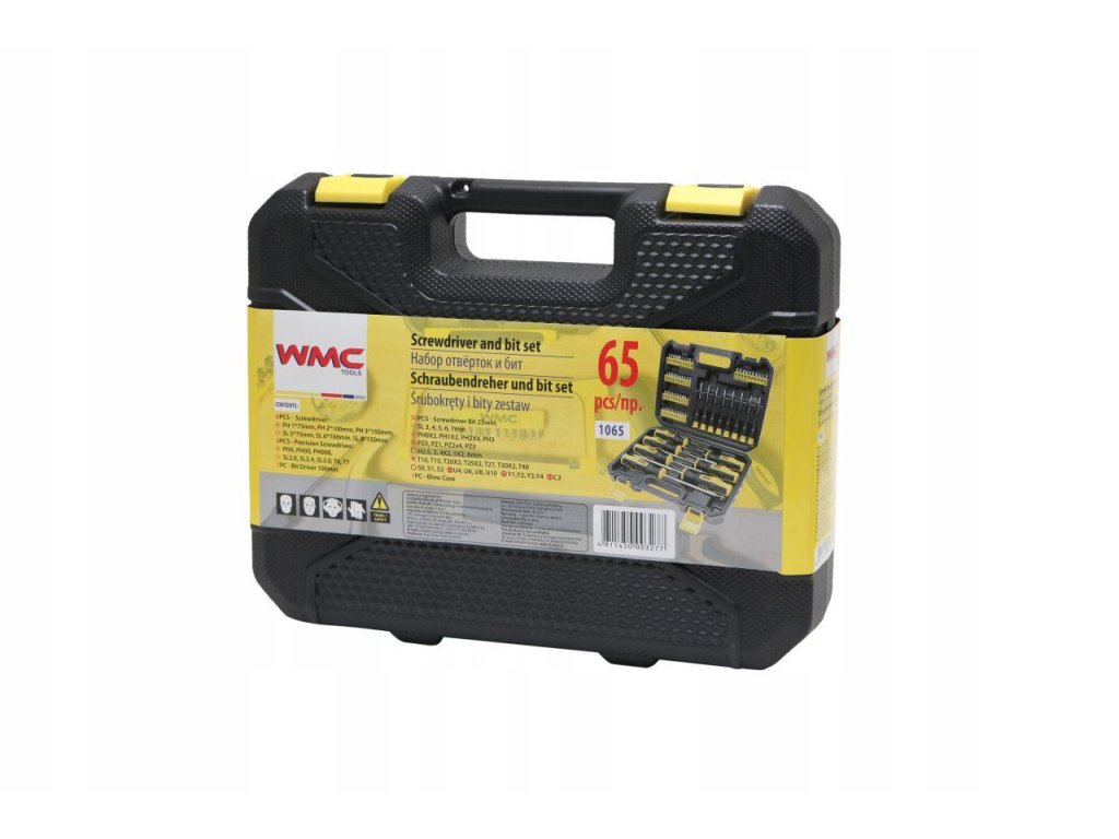 Setul de șurubelnițe și vârfuri de șurubelnițe WMC conține 65 de elemente de înaltă calitate. Capul de lucru al vârfului a fost tratat termic, asigurând astfel o duritate și rezistență corespunzătoare la îndoire. Șurubelnița are un vârf magnetic. Mânerul împiedică alunecarea în mână, fiind rezistent la efectele substanțelor chimice, uleiurilor și lubrifianților. Toate acestea, împreună cu 8 șurubelnițe precise și 50 de biți de forme și dimensiuni variate, depozitate într-o geantă practică, facilitează transportul și depozitarea.