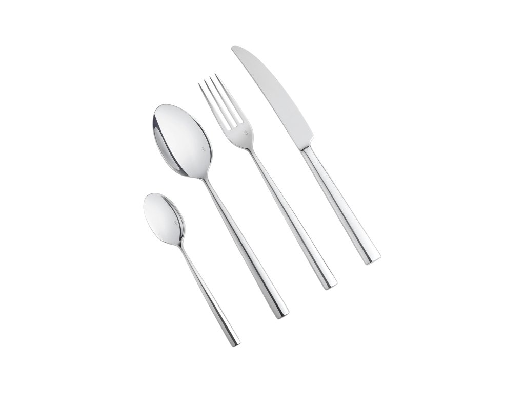 Setul de tacâmuri Teesa impresionează prin designul său simplu, dar atemporal. Confortul în utilizare este asigurat nu doar de forma netedă, ci și de construcția perfect echilibrată, cu o îngustare caracteristică în partea superioară.